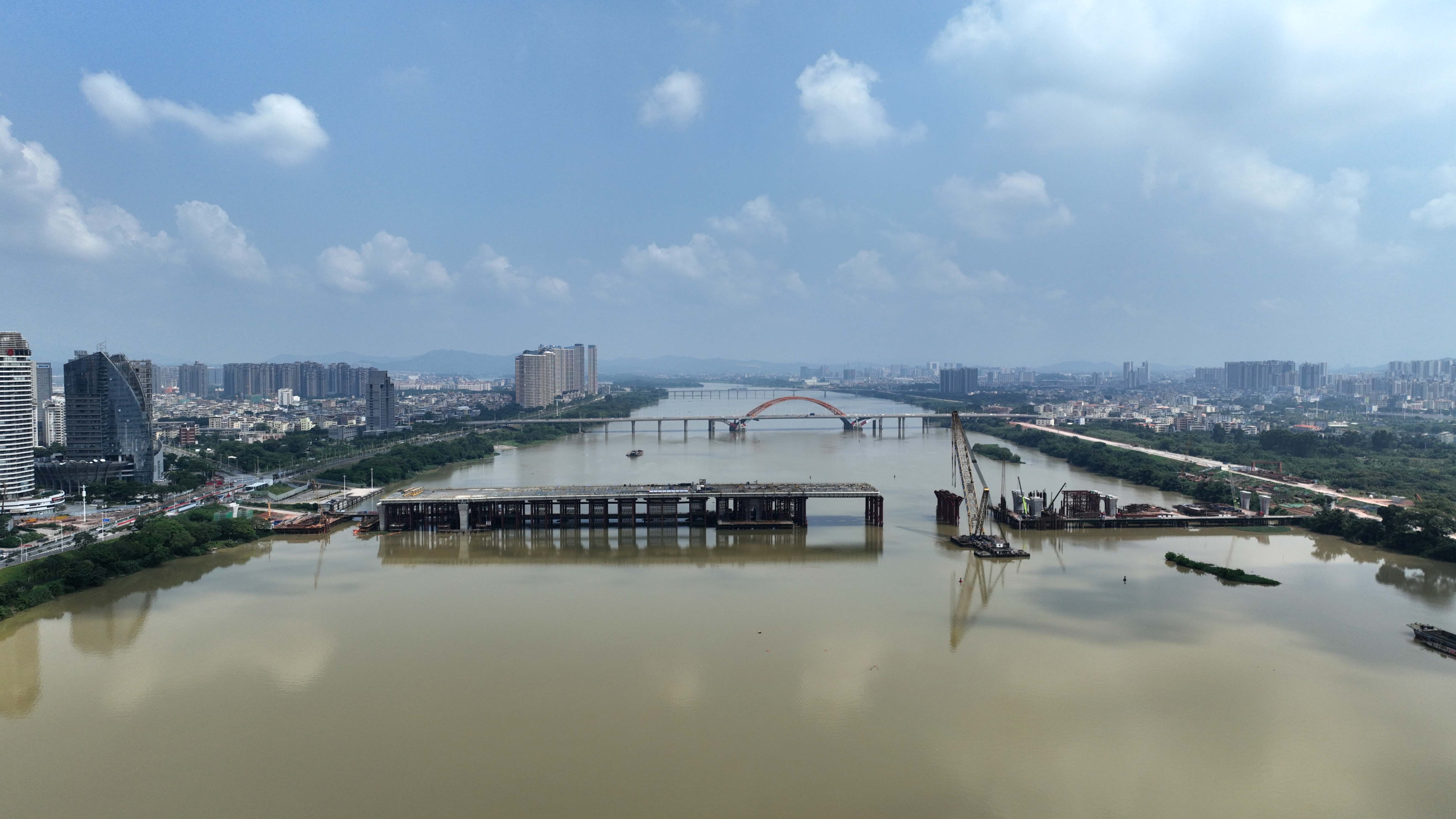 2023年9月23日 初具雛形的鵝城大橋正在加緊施工。
