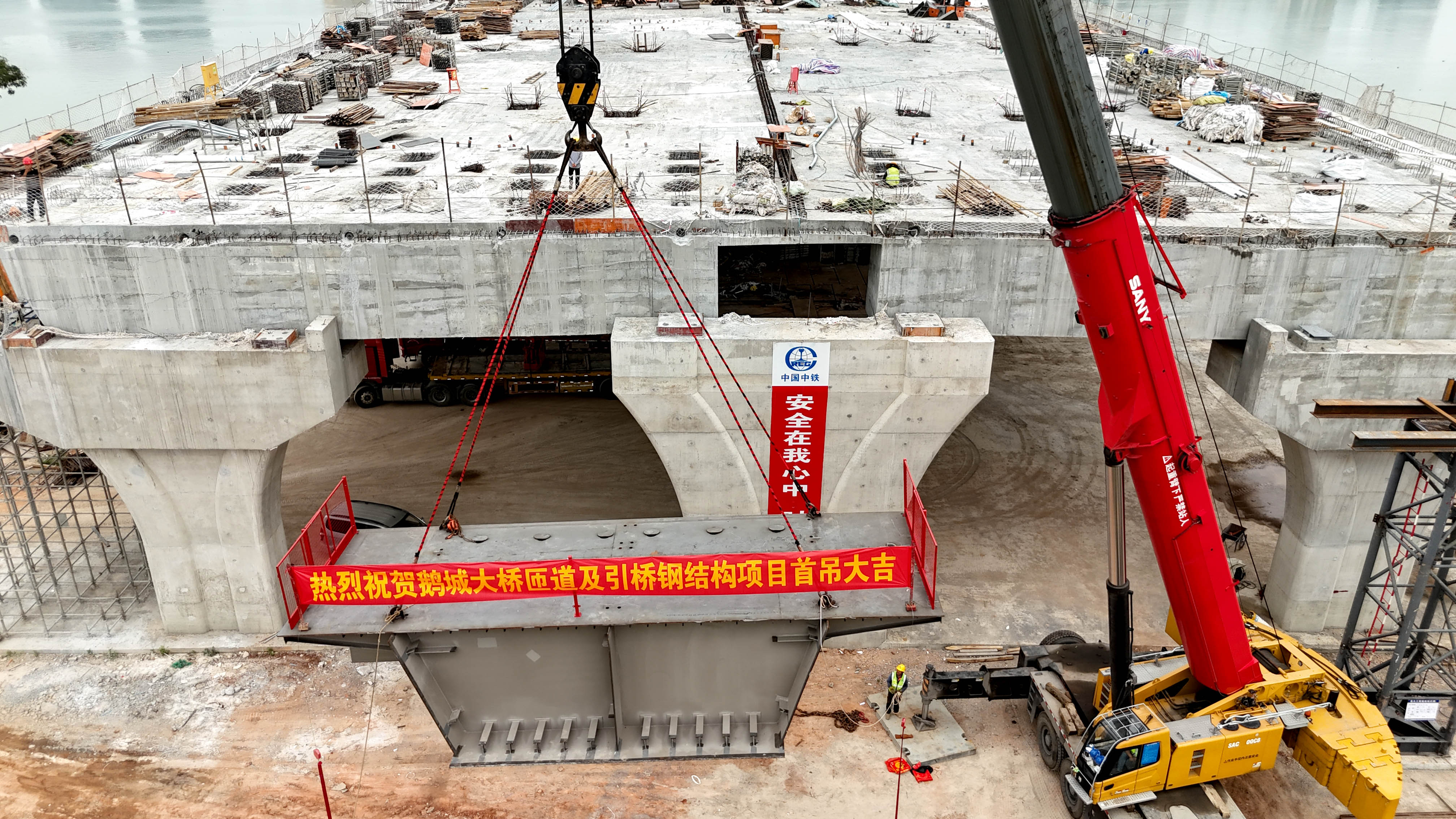 主橋正式進(jìn)入鋼梁架設(shè)階段,一片片鋼梁被精準(zhǔn)吊起、拼接,如同搭建一座宏偉的鋼鐵積木,施工場面震撼人心
