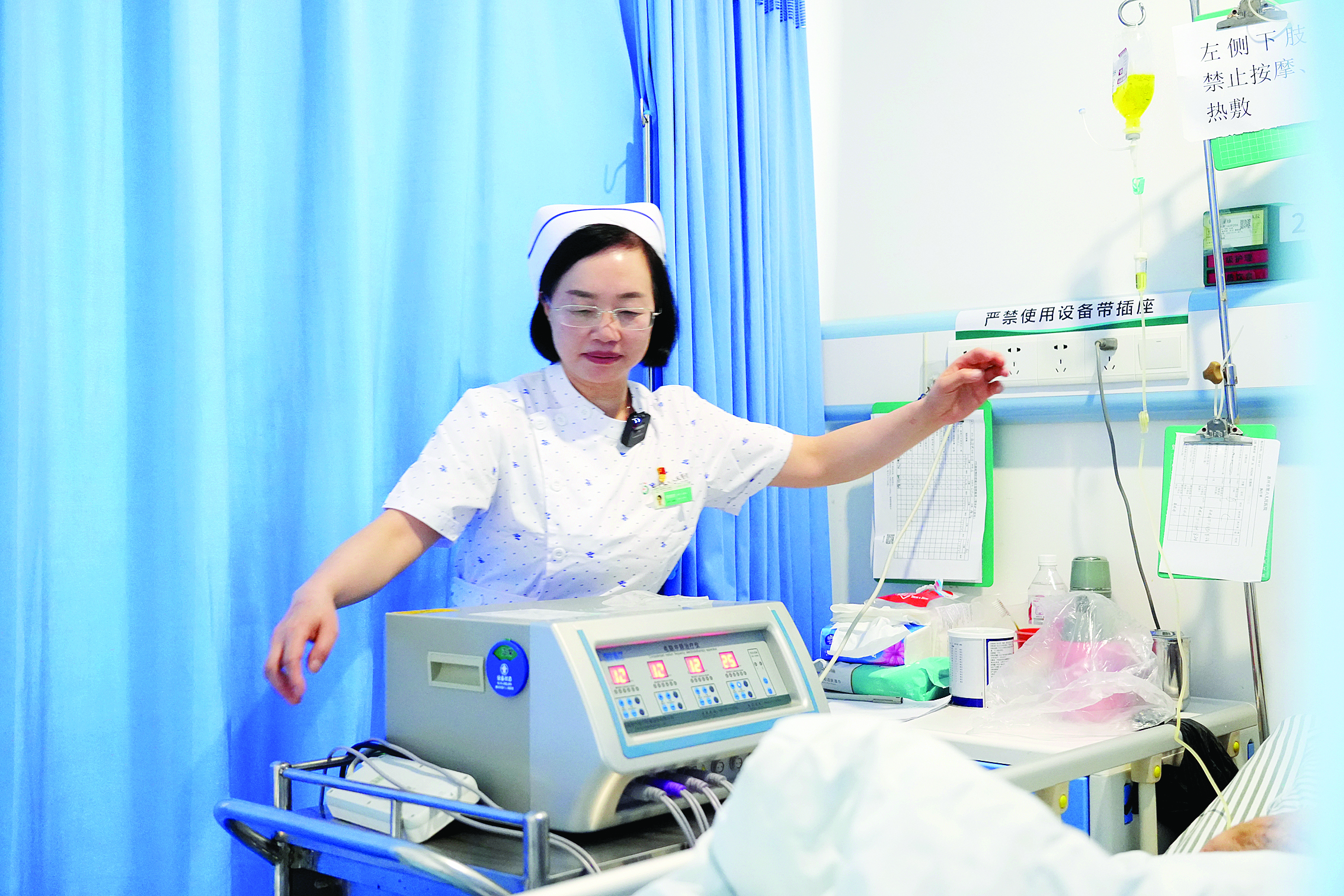住在ICU的患者,病情皆危重萬分。他們有的插著呼吸管,艱難地維持著呼吸;有的連接著各種復(fù)雜的儀器設(shè)備,生命體征全靠機(jī)器小心翼翼地維持著。對(duì)于何稀和同事們而言,她們不僅是護(hù)士,更是敏銳的“生命偵探”,需要通過儀器上的數(shù)據(jù)波動(dòng)和患者的表情、肢體動(dòng)作等細(xì)微變化,去判斷他們的需求和病情變化。