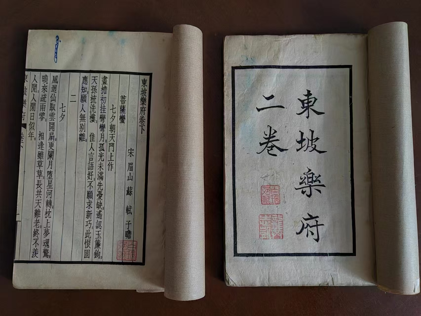 白瑞強向市東坡文化協(xié)會捐贈一批東坡文獻資料,這是民國版本《東坡樂府》。