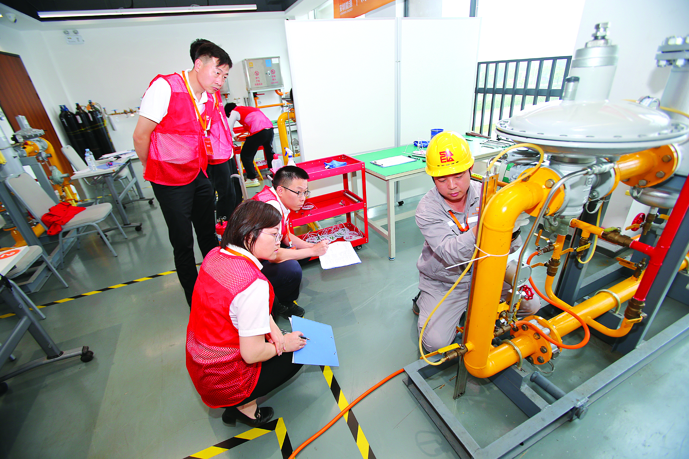 競(jìng)賽的成功舉辦,離不開惠州燃?xì)飧邩?biāo)準(zhǔn)培訓(xùn)基地的堅(jiān)實(shí)支撐。該基地高度還原真實(shí)工作場(chǎng)景,為“理論+實(shí)操”雙維度考核提供了理想平臺(tái)。競(jìng)賽聚焦燃?xì)庑袠I(yè)核心崗位需求,設(shè)置了燃?xì)庥脩舭惭b檢修工、燃?xì)夤芫W(wǎng)運(yùn)行工、液化天然氣儲(chǔ)運(yùn)工三大工種。實(shí)操考核環(huán)節(jié)設(shè)計(jì)極具挑戰(zhàn)性,要求選手在限定時(shí)間內(nèi)精準(zhǔn)完成管網(wǎng)泄漏應(yīng)急處置、調(diào)壓設(shè)備檢修調(diào)試、LNG接卸儲(chǔ)存等高難度任務(wù),全面檢驗(yàn)選手的實(shí)戰(zhàn)能力。賽場(chǎng)內(nèi)設(shè)備運(yùn)轉(zhuǎn)聲此起彼伏,選手們手持工具精準(zhǔn)調(diào)試,排查隱患動(dòng)作行云流水,應(yīng)急處置沉著果斷,充分展現(xiàn)了深厚的專業(yè)功底與精湛技藝。惠州燃?xì)庾鳛閰f(xié)辦方,其培訓(xùn)基地的完善設(shè)施和先進(jìn)技術(shù),為這場(chǎng)高標(biāo)準(zhǔn)賽事的流暢、專業(yè)運(yùn)行提供了強(qiáng)有力的“硬核”保障。