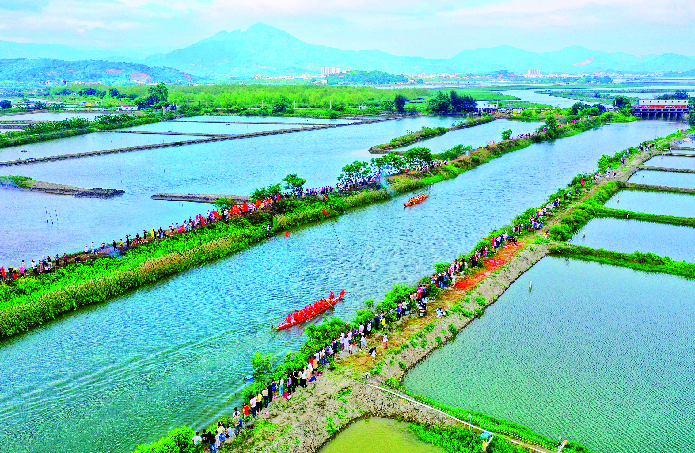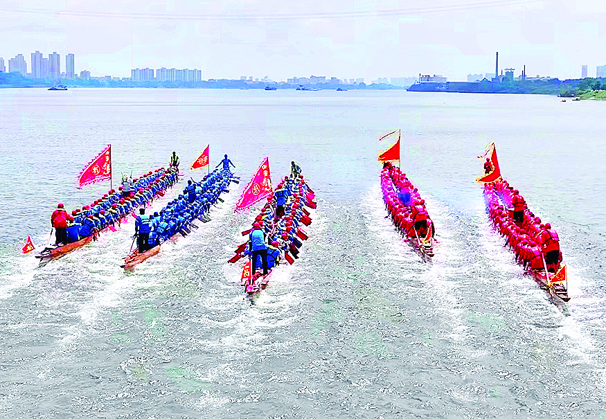 河道內(nèi)、翠湖里,你追我趕,鑼鼓聲、劃槳聲劈波逐浪,水面上演“速度與激情”;看臺(tái)上、河岸邊,人頭攢動(dòng),歡呼聲、吶喊聲此起彼伏,匯成一片歡樂海洋……