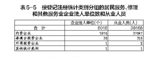 在居民服務(wù)、修理和其他服務(wù)業(yè)企業(yè)法人單位中,內(nèi)資企業(yè)占99.3%,港澳臺投資企業(yè)占0.6%,外商投資企業(yè)占0.1%。
