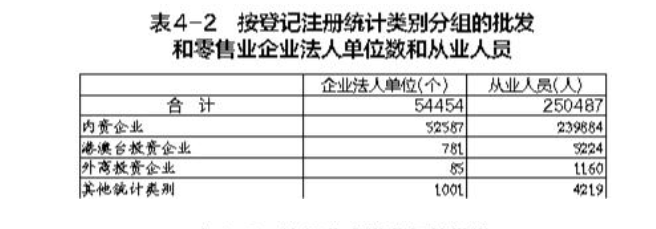 在批發(fā)和零售業(yè)企業(yè)法人單位中,內(nèi)資企業(yè)占96.6%,港澳臺投資企業(yè)占1.4%,外商投資企業(yè)占0.2%。