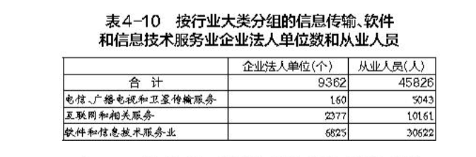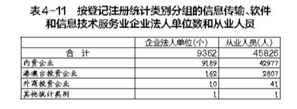 在信息傳輸、軟件和信息技術(shù)服務(wù)業(yè)企業(yè)法人單位中,內(nèi)資企業(yè)占98.2%,港澳臺投資企業(yè)占1.7%,外商投資企業(yè)占0.1%。