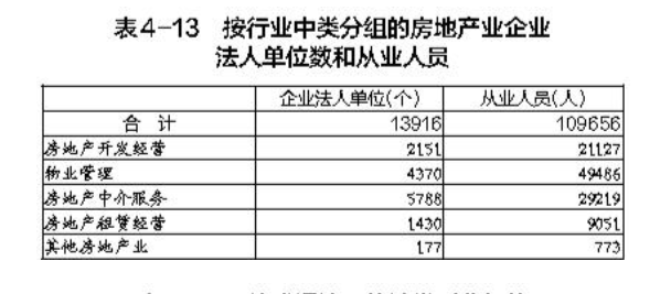 在房地產(chǎn)業(yè)企業(yè)法人單位從業(yè)人員中,內(nèi)資企業(yè)占96.5%,港澳臺投資企業(yè)占2.8%,外商投資企業(yè)占0.7%(詳見表4-14)。