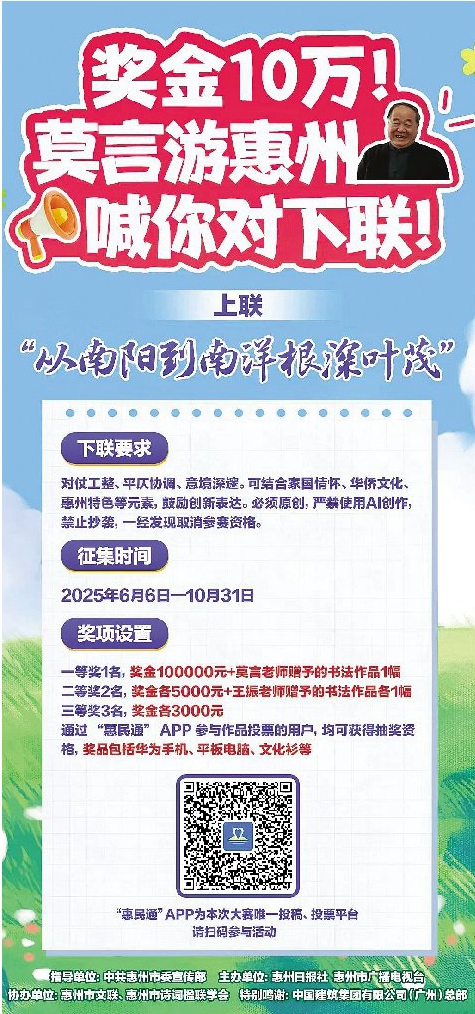“莫言游惠州喊你對下聯(lián)”征集活動(dòng)已收稿超3000條