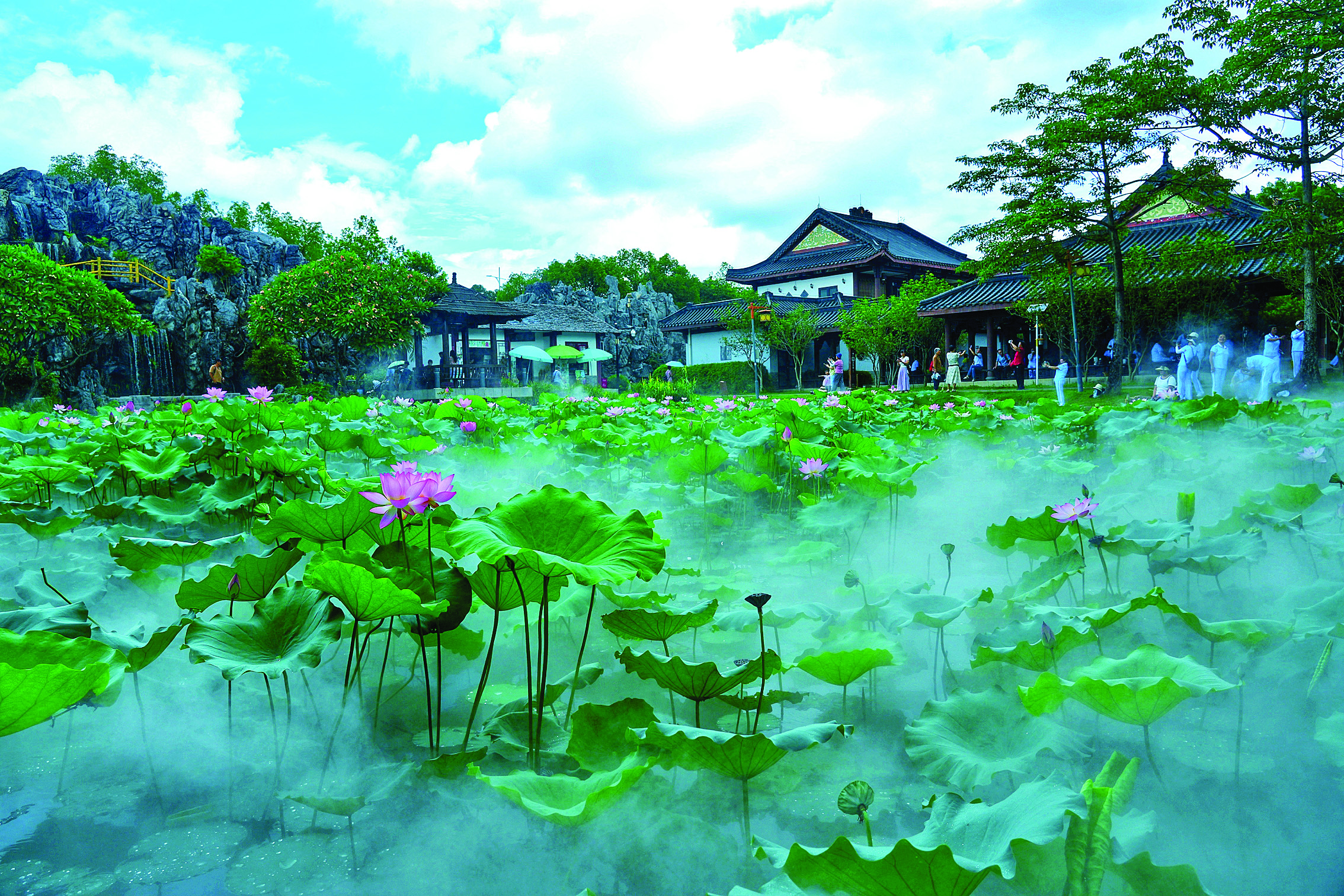 當(dāng)輕紗般的霧靄邂逅滿池荷花,會碰撞出怎樣的詩意畫卷?近日,惠州西湖豐渚園給出了答案——荷花池畔人工霧景初綻芳容,裊裊霧氣升騰彌漫,勾勒出一幅靈動的水墨丹青。氤氳霧氣中,荷花若隱若現(xiàn),碧綠荷葉在霧氣的縈繞間仿若浮于云端。清風(fēng)拂過,霧浪翻涌,荷花搖曳生姿,翩翩起舞,引得市民游客駐足沉醉。