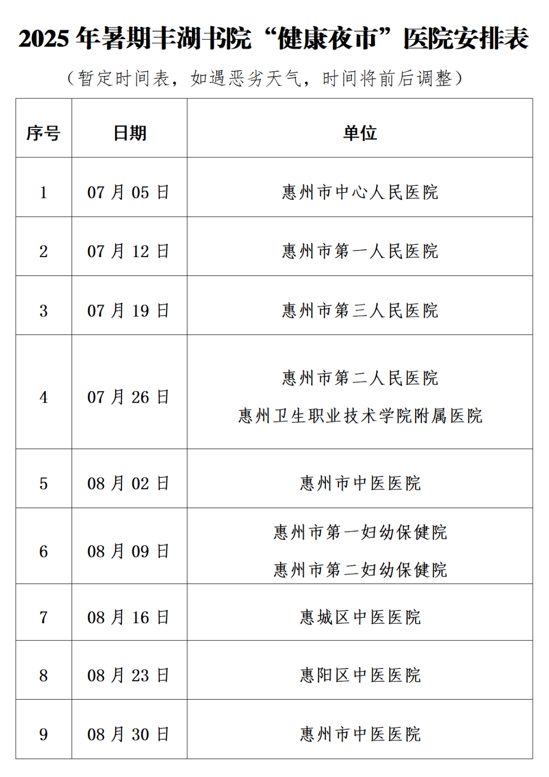 為深入學(xué)習(xí)貫徹習(xí)近平新時代中國特色社會主義思想,積極回應(yīng)人民群眾對美好生活的向往,尤其對豐富夜間文化生活的需求,暑假期間,惠州市將繼續(xù)在豐湖書院舉辦2025年“惠美好”文明實踐點亮“夜模式”——“健康夜市”活動,共9場。