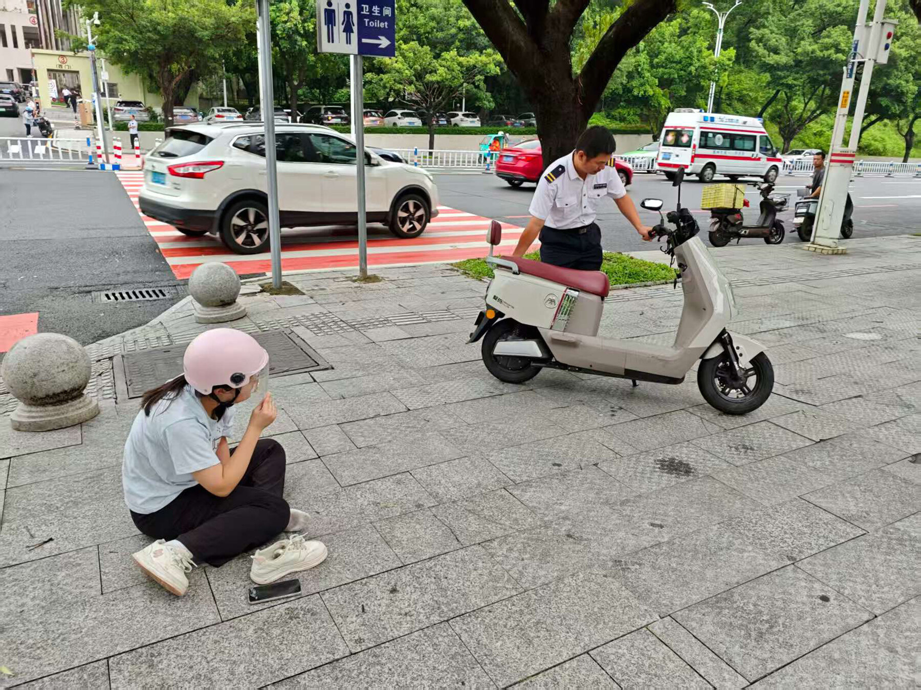 “傷者當(dāng)時說話不太清楚,意識比較模糊。”黃浩事后回憶道。他告訴記者,其所在單位經(jīng)常開展應(yīng)急處置培訓(xùn),所以他了解如何處置此類情況。當(dāng)時他沒有貿(mào)然移動仍在抽搐的傷者,而是第一時間撥打了120急救電話,同時觀察傷者情況,并與一名熱心群眾協(xié)力扶起壓在傷者身上的電動車,并搬來雪糕筒在周邊設(shè)置警示區(qū),維持好現(xiàn)場秩序,避免傷者受到二次傷害。直到傷者抽搐癥狀稍有緩解,他們詢問其情況后,才將她扶至路邊安全區(qū)域休息。