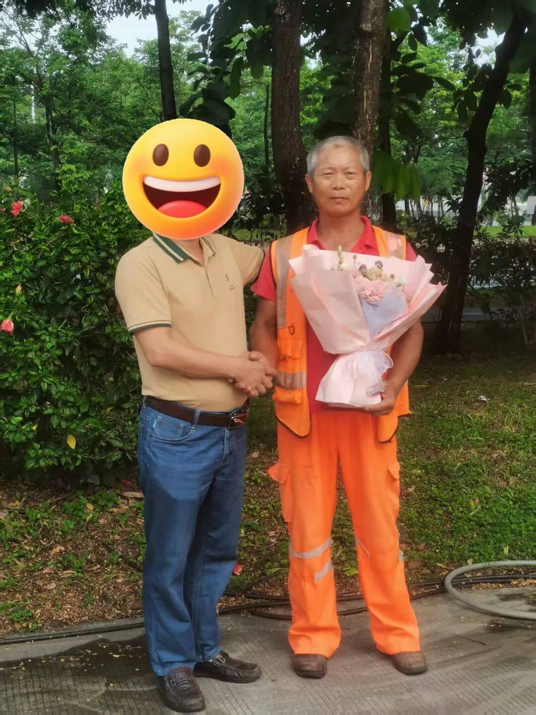 昏迷獲救助司機(jī)和環(huán)衛(wèi)工人劉國(guó)友(右)合影。
