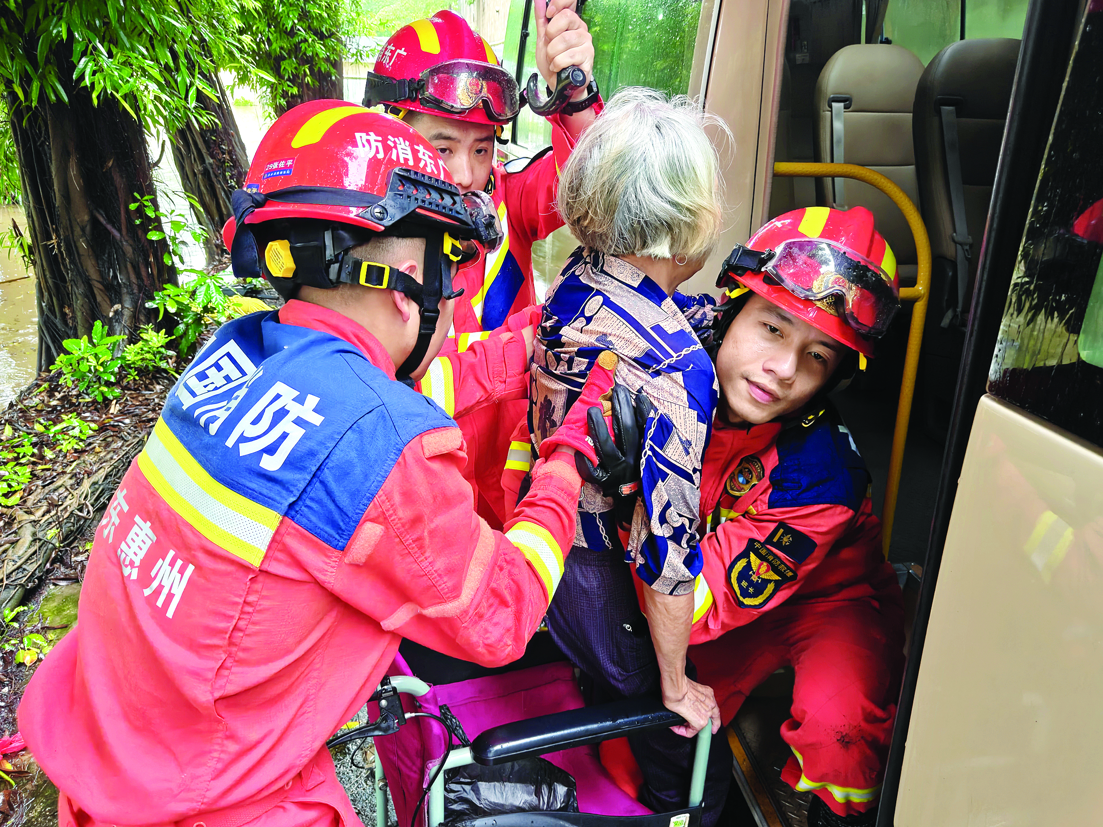 救援隊(duì)幫助受困老人轉(zhuǎn)移。惠州消防供圖