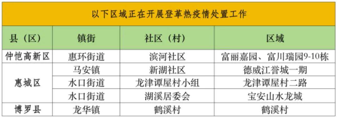 8月9日下午,惠州市疾控中心(惠州市衛(wèi)監(jiān)所)發(fā)布存在蚊媒傳染病(基孔肯雅熱、登革熱)傳播風險的區(qū)域,提醒大家做好防范措施。