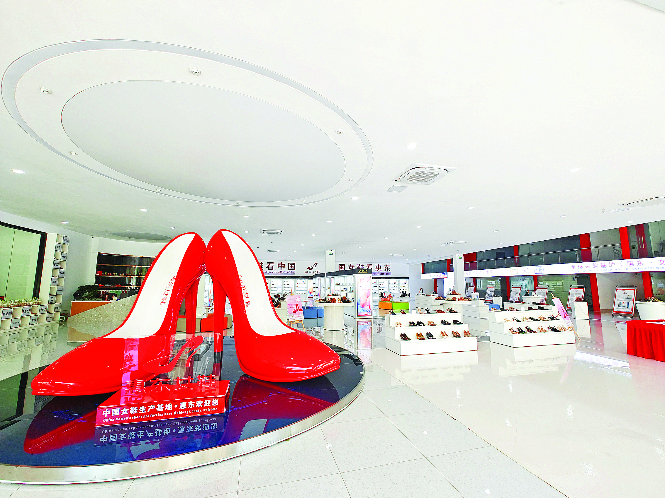 惠東女鞋全域銷售中心大廳擺放的女鞋LOGO模型。