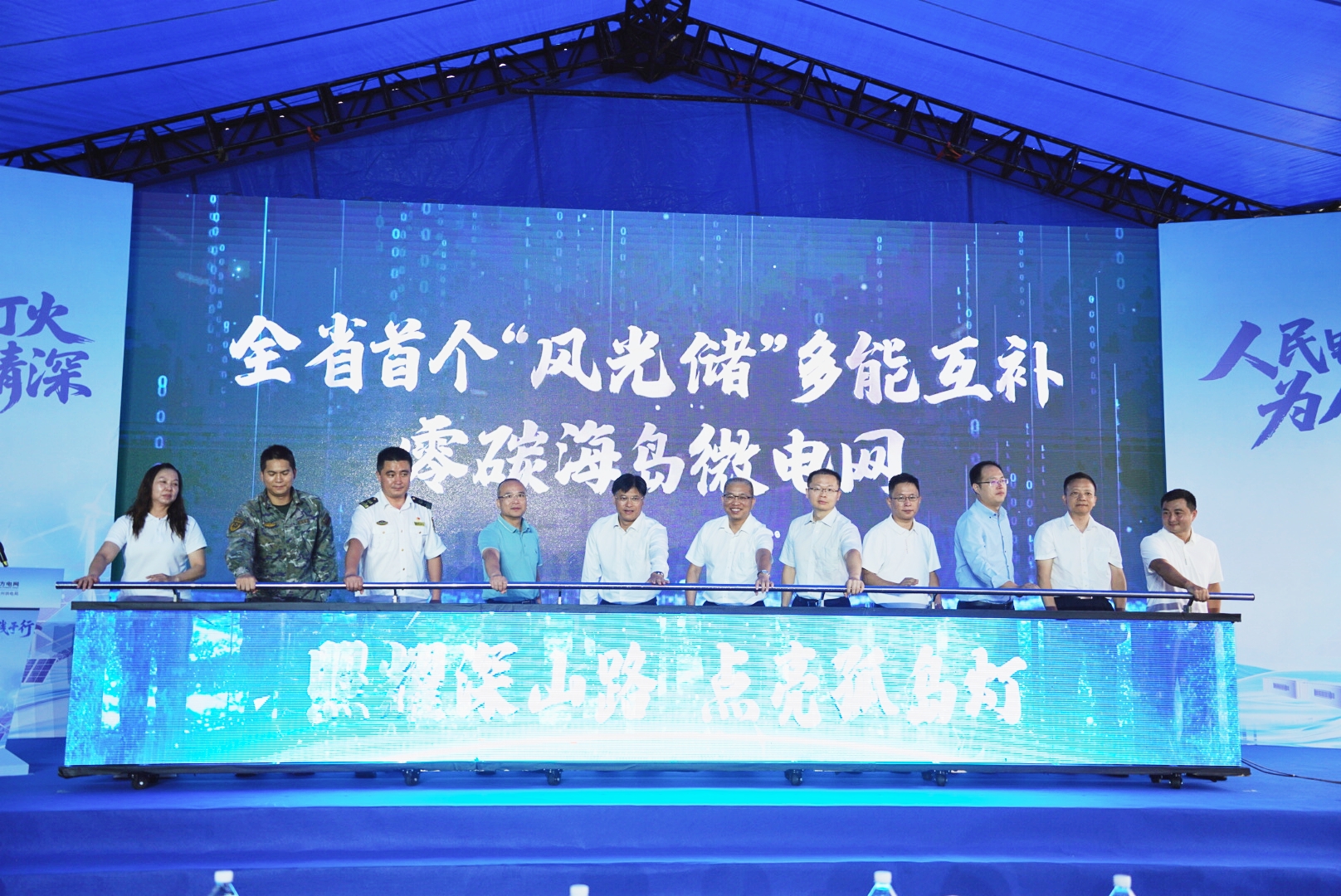 活動當天還舉行了“媽灣村亮燈儀式”,三門島媽灣村第二期微電網(wǎng)項目正式啟用。該項目將綠色電力進一步延伸至海島更多角落,為村民生活品質(zhì)提升與海島發(fā)展注入新動能。