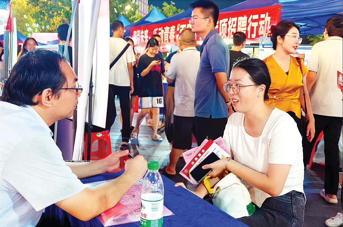 招聘夜市現(xiàn)場,不少求職者前來求職。