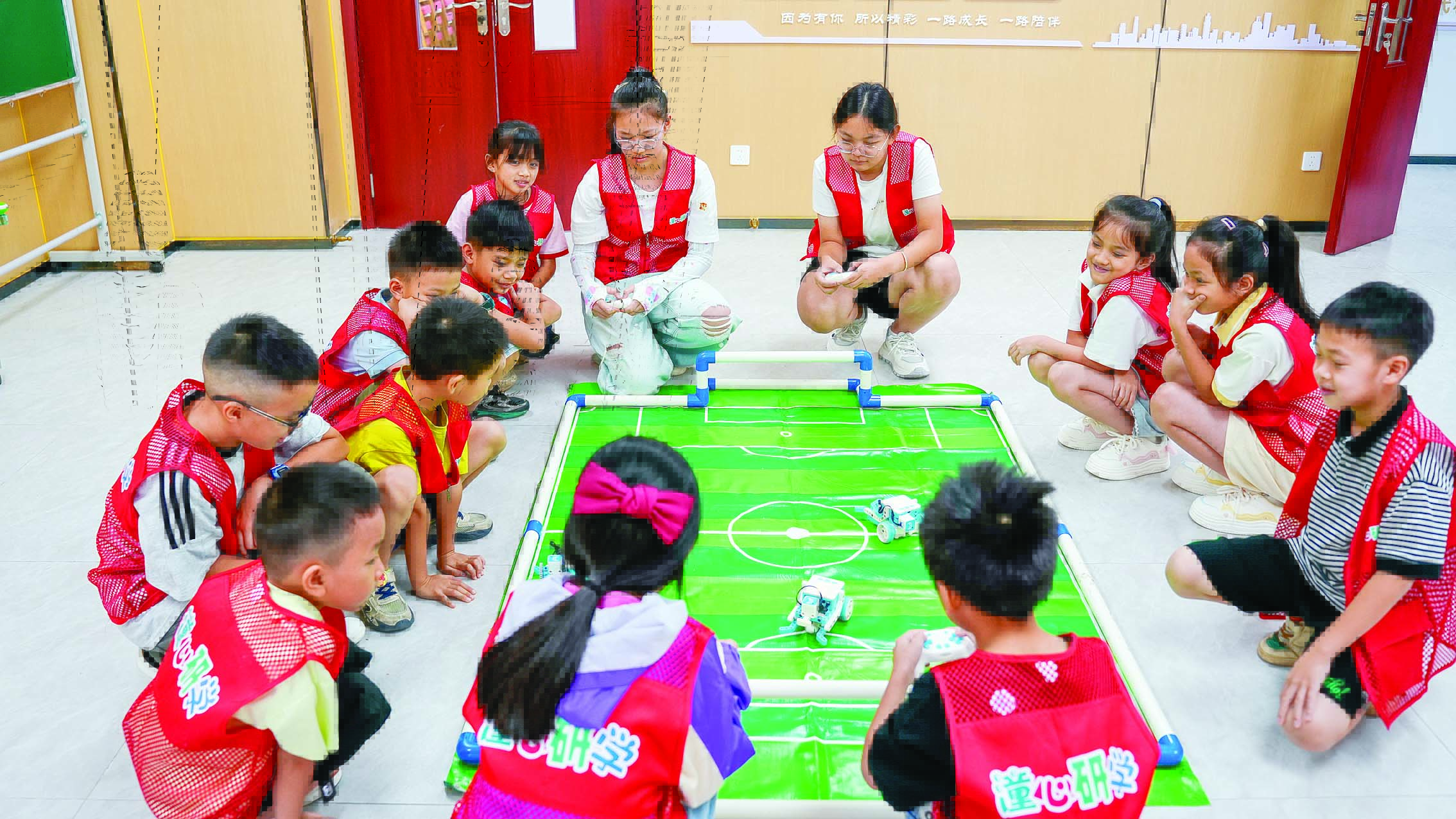 暑期研學(xué)中,足球機(jī)器人比賽引起孩子們極大參與熱情。