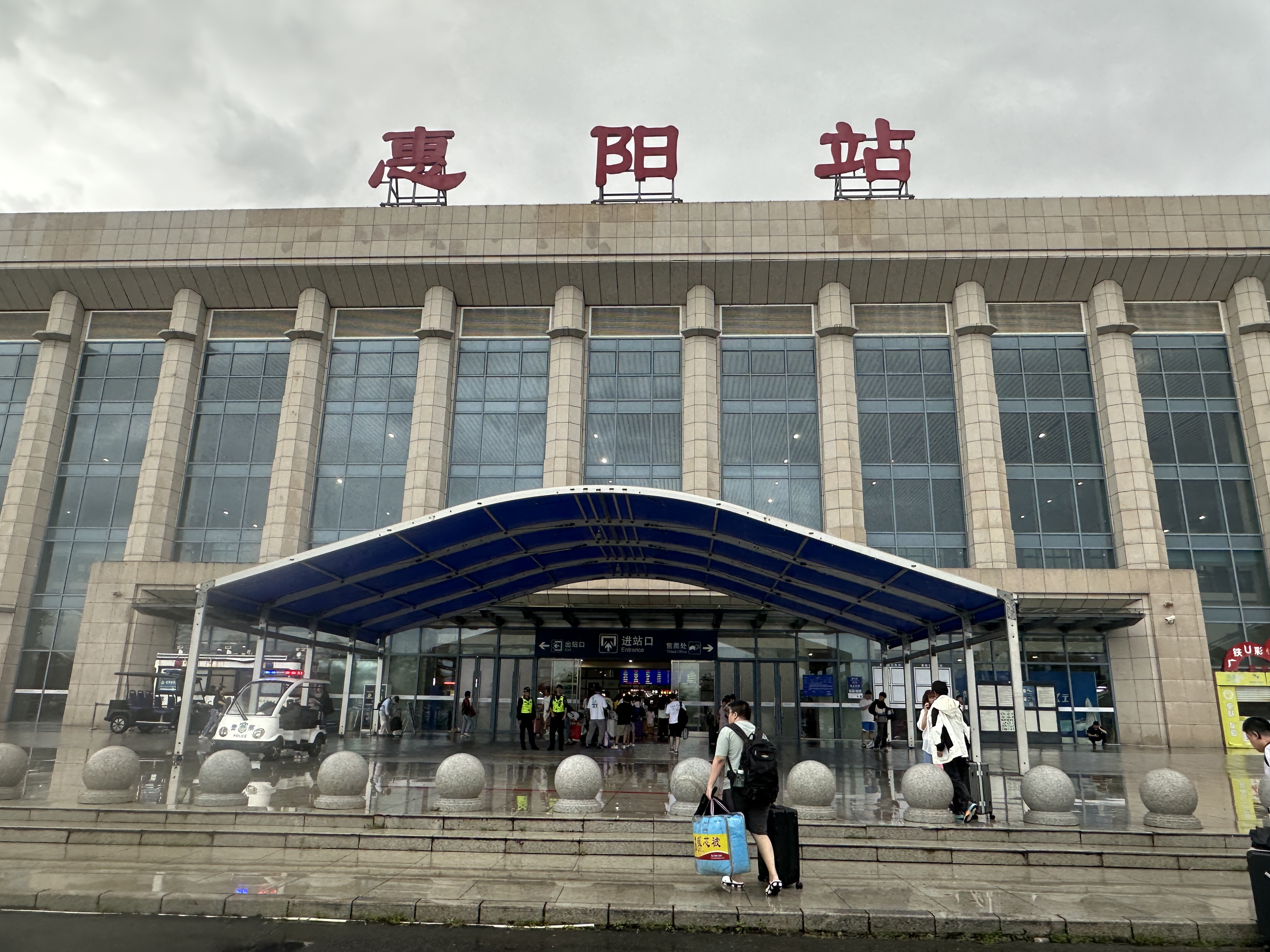 惠陽站進站口有遮雨棚,但從站前廣場下車后走來,仍有一段露天距離。