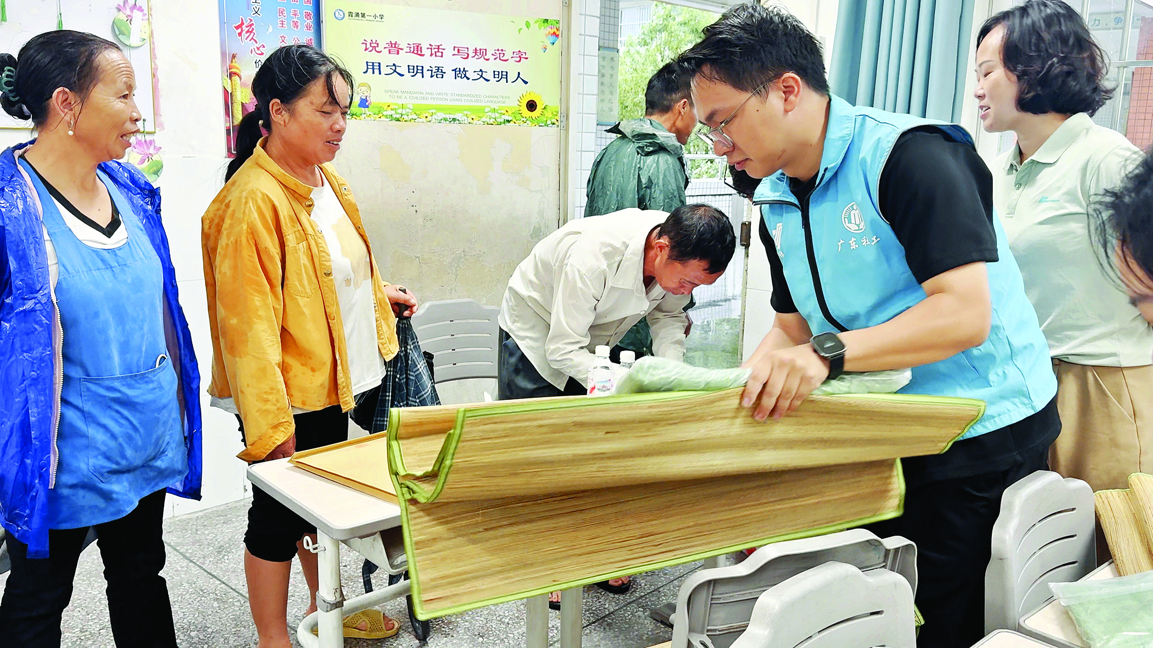 9月19日下午4點半,大亞灣霞涌第一小學的臨時庇護場所內(nèi),22名轉(zhuǎn)移群眾有說有笑,街道辦工作人員備好的被子、席子、方便面、飲用水等物資一應(yīng)俱全。來自貴州的外來務(wù)工人員吳大哥感慨:“每年臺風天,政府都會組織我們從出租屋轉(zhuǎn)移到安全的安置點,這樣的貼心安排讓我們心里特別踏實。”