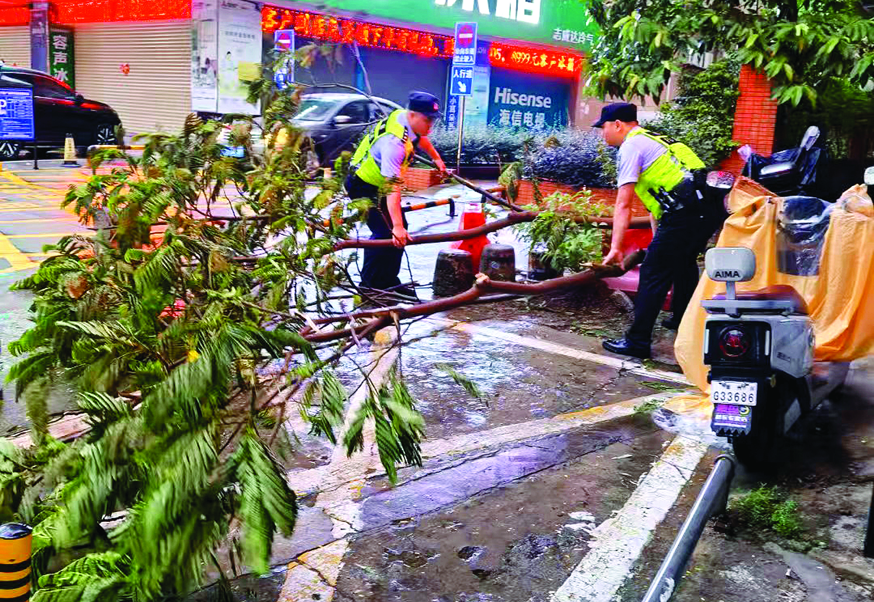 惠城橋西街道南壇轄區(qū)一棵樹被狂風刮倒,民警迅速清障保暢通。 惠州日報記者謝菁菁 通訊員楊燕玲 攝
