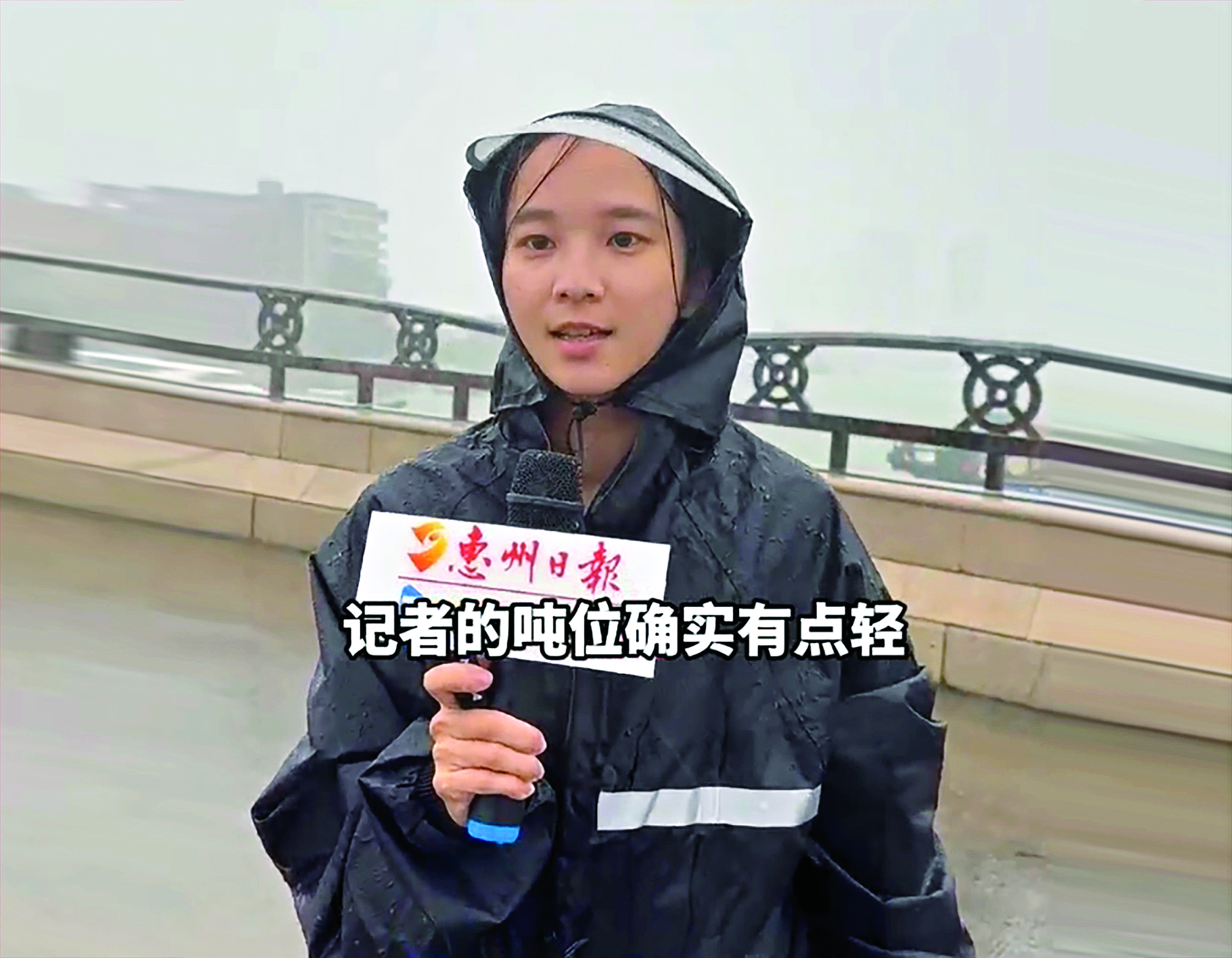 臺風來襲,本報女記者站立海邊風雨中的出鏡報道讓人動容。一句“記者噸位90斤”的幽默自嘲,引發(fā)了網(wǎng)友們關(guān)切的調(diào)侃,造了個不大不小的“噸位梗”。