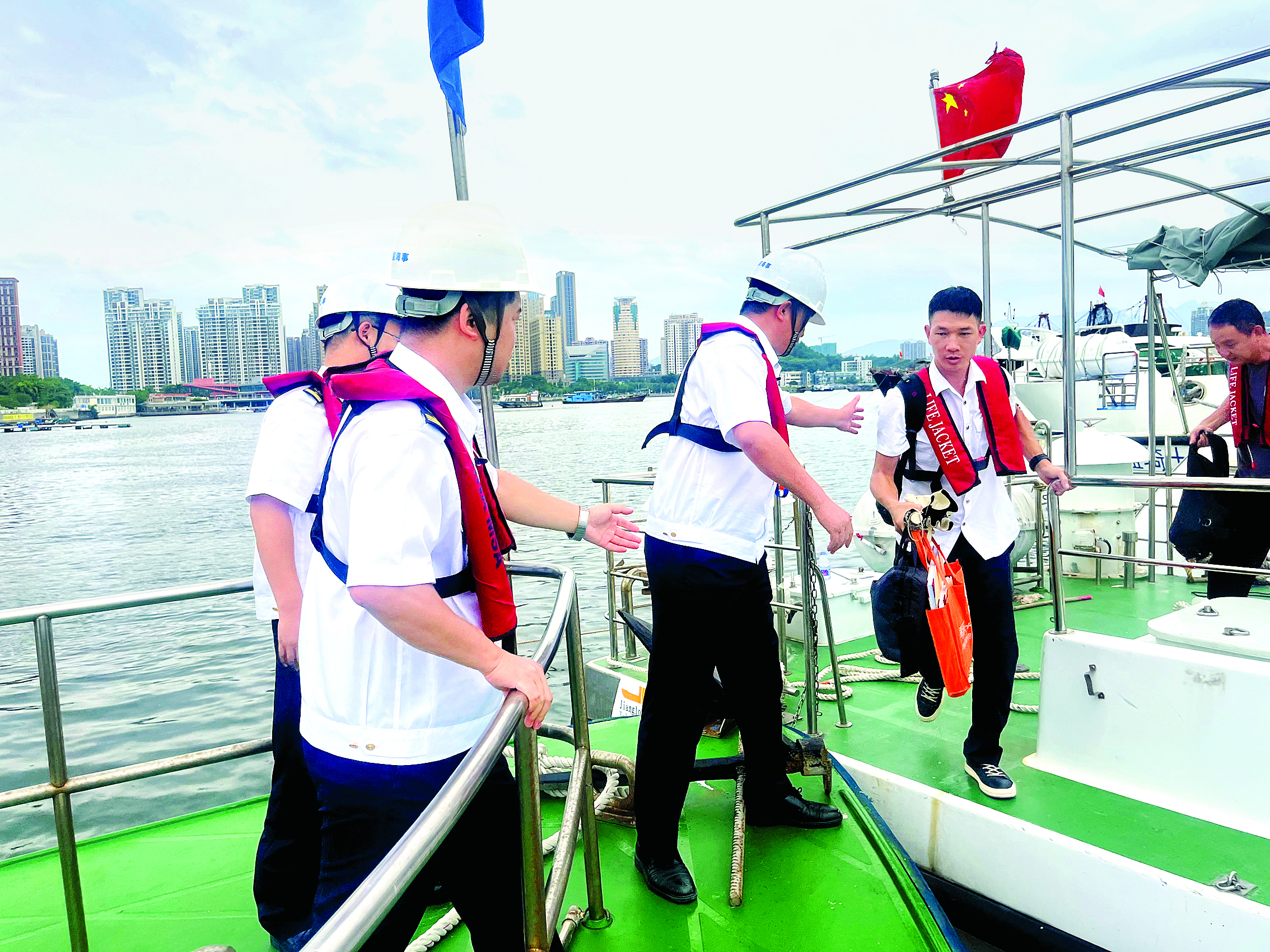 惠州海事人員幫助一艘深圳籍客船安全轉(zhuǎn)移船員。惠州日?qǐng)?bào)記者葉麗莎 通訊員劉依婷 攝