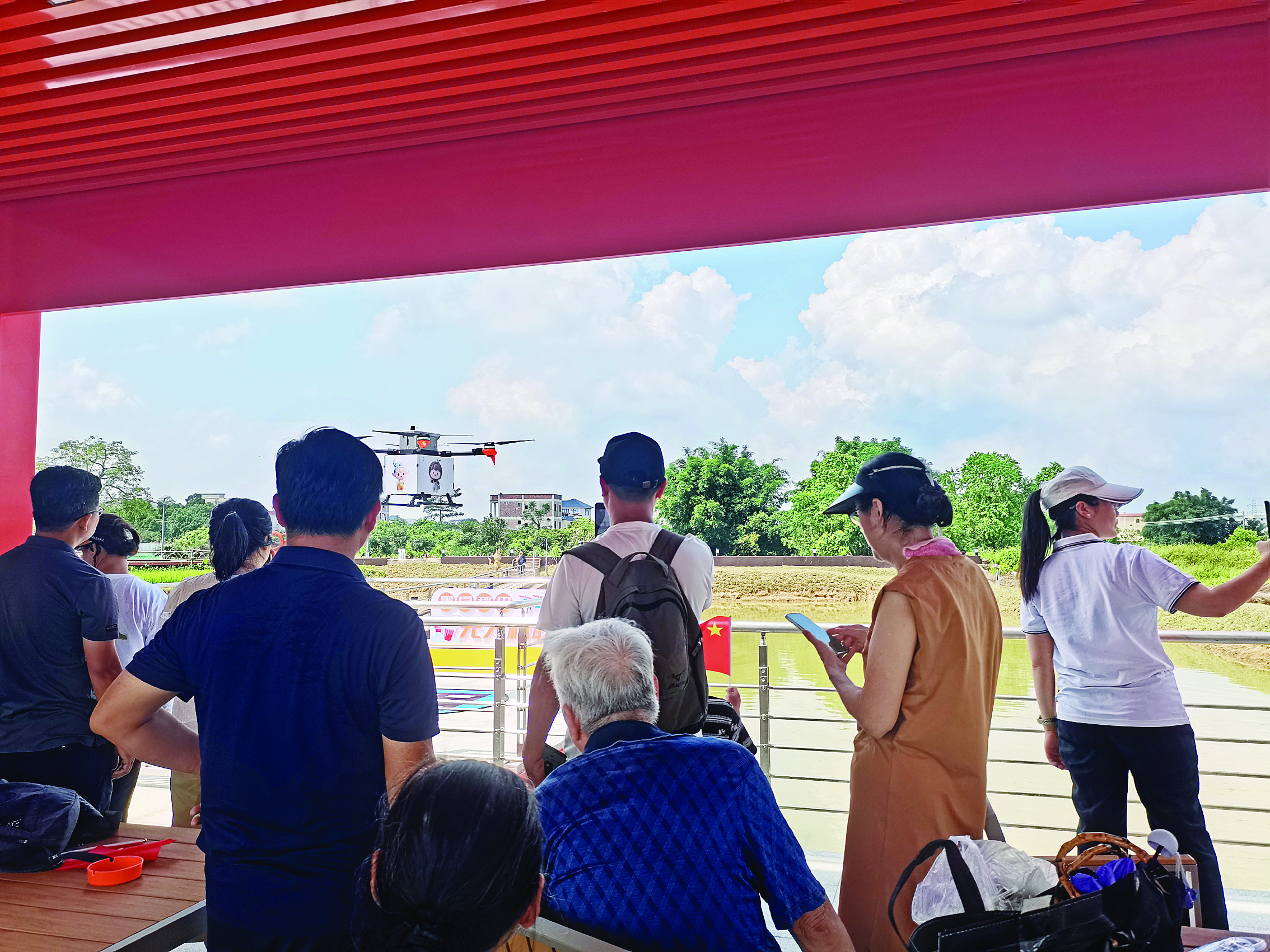 “我們吸取了游客的意見,今年增加了兩層稻田觀賞打卡區(qū),游客來到稻田中可以愜意地圍坐在一起聊天品咖看稻浪。”墨園村黨總支書記、村委會主任劉紅蘭說,“稻草人守田+無人機送咖”的奇妙巧思讓鄉(xiāng)村景觀與低空產(chǎn)業(yè)碰撞出火花。