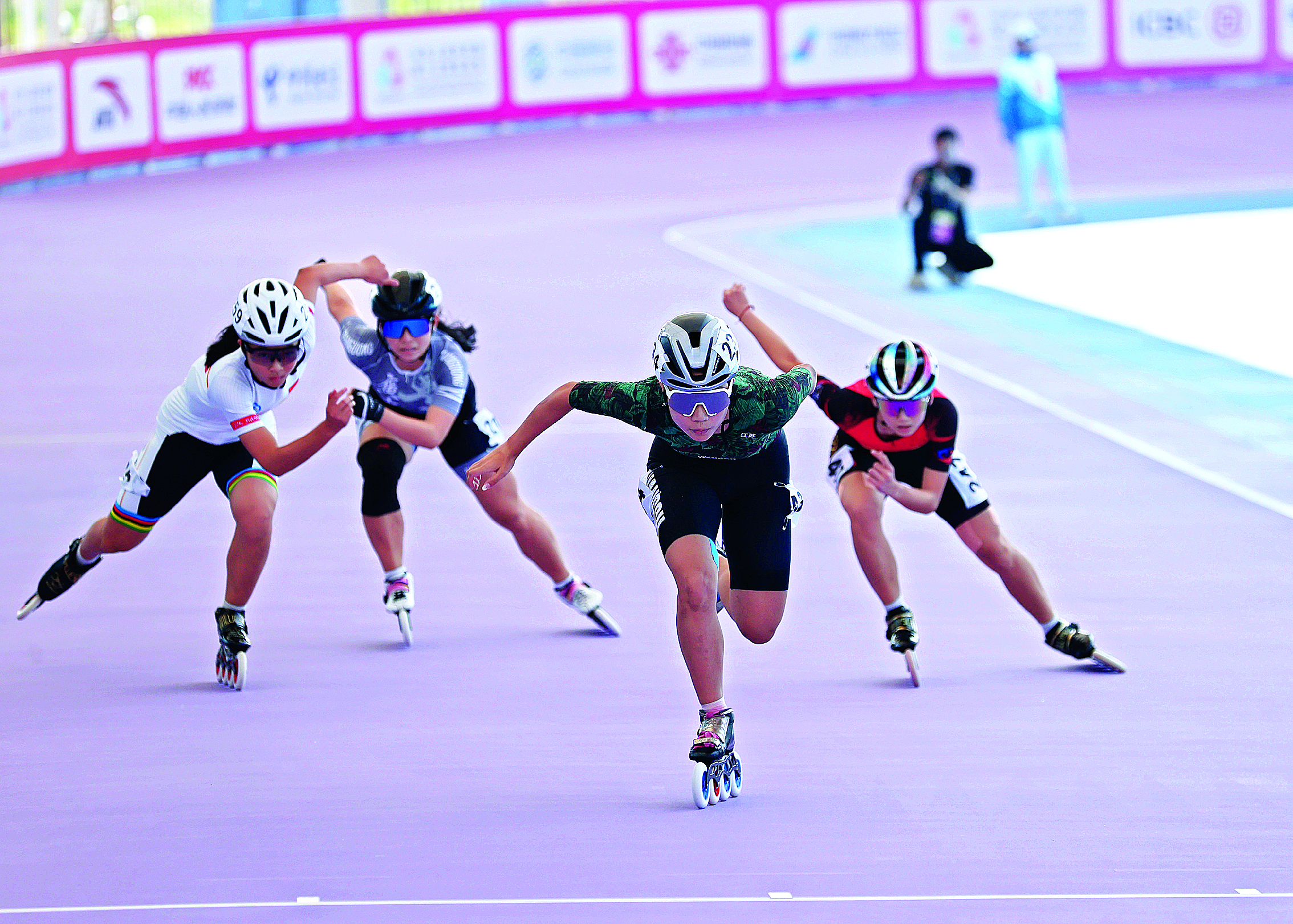 在速度輪滑女子團(tuán)體積分賽10000米積分淘汰賽中,江蘇隊(duì)包攬了男子組與女子組的第一名。江蘇隊(duì)運(yùn)動(dòng)員李雨霏以總分27分的優(yōu)異成績(jī)奪得女子組第一名。賽后李雨霏對(duì)現(xiàn)場(chǎng)的賽道條件給予了高度評(píng)價(jià):“這是我第三次來(lái)惠州,這次的賽道很新,也很干凈,正是這樣的優(yōu)質(zhì)場(chǎng)地,讓我能專注于比賽,發(fā)揮出自己的水平。”