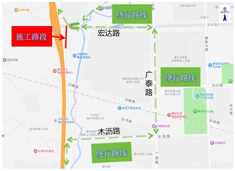 惠澳大道東線(宏達(dá)路-木瀝路段)臨時交通管制示意圖(惠州交管部門提供)