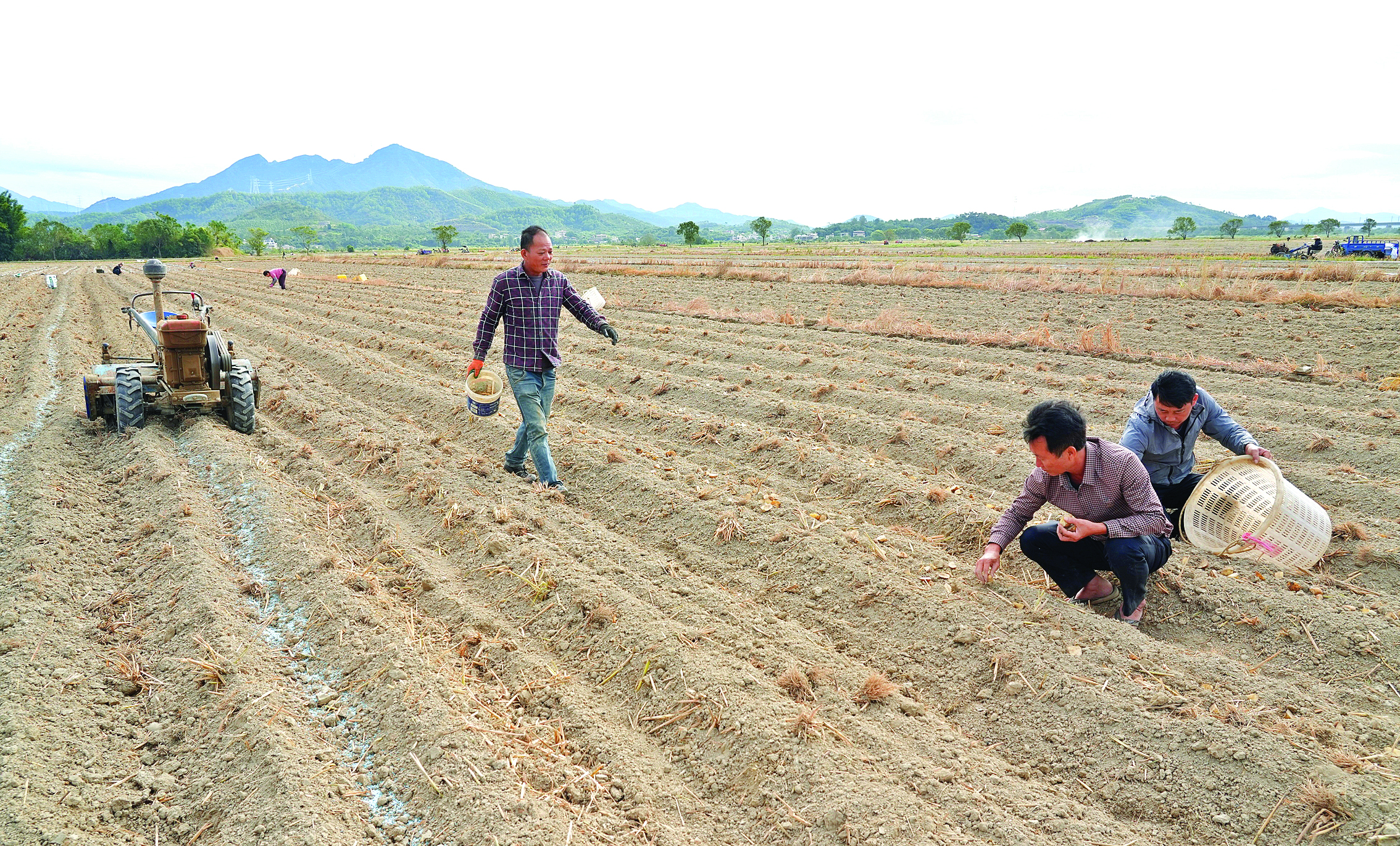 惠東縣稔山鎮(zhèn)竹園村的農田里,農戶在冬種。惠州日報記者朱金贊 攝