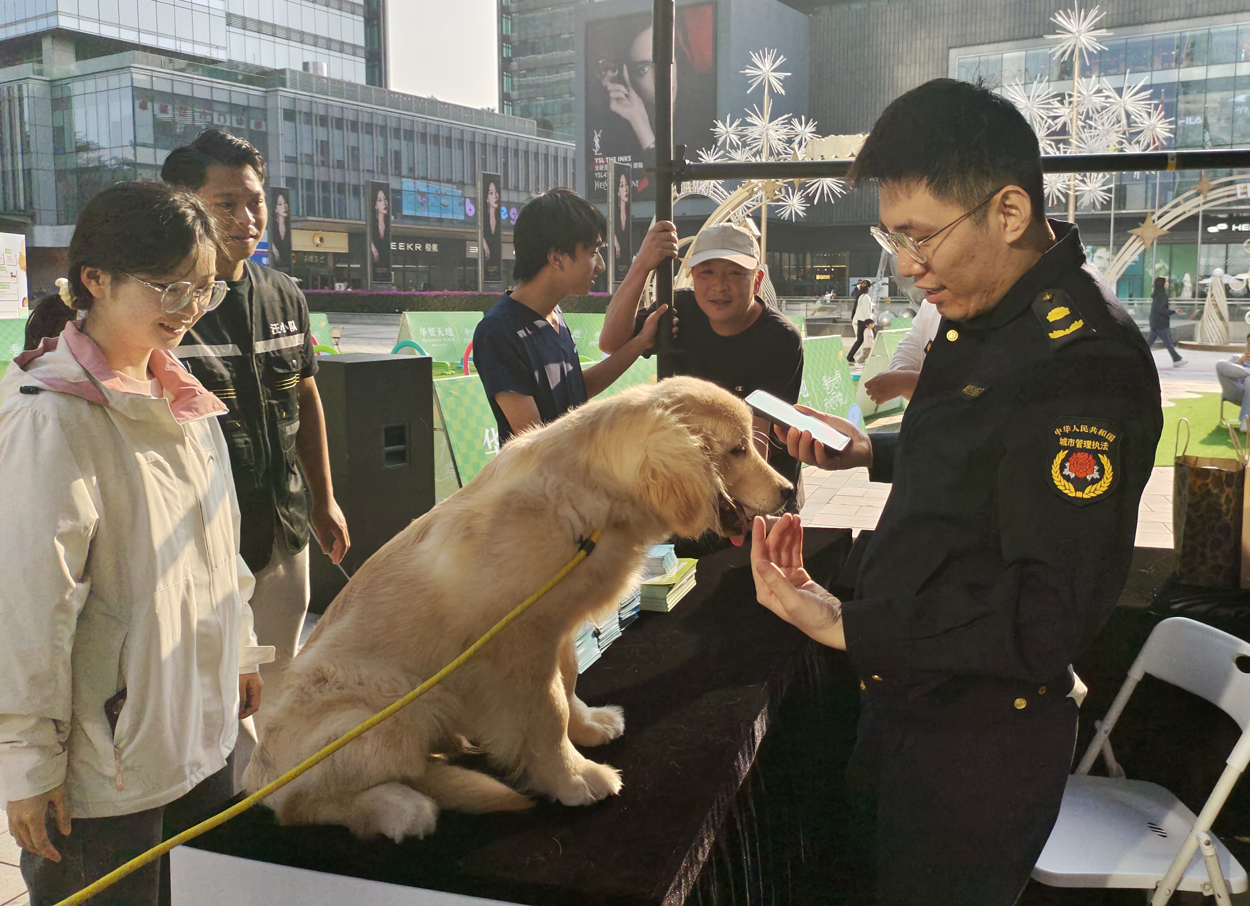 執(zhí)法人員指導(dǎo)群眾進行養(yǎng)犬登記。 惠州東江圖片社供圖