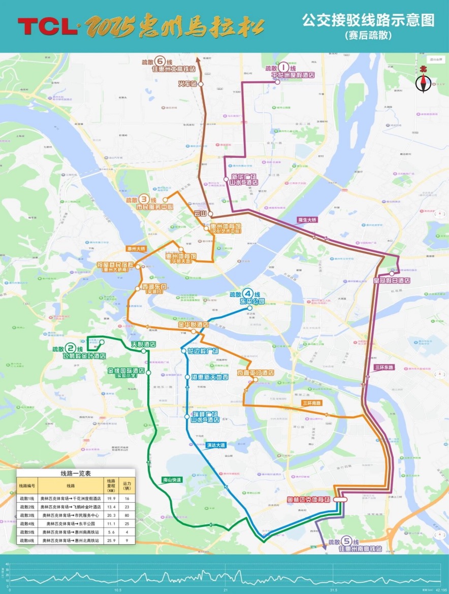2025惠州馬拉松公交接駁線路示意圖(賽后疏散)。
