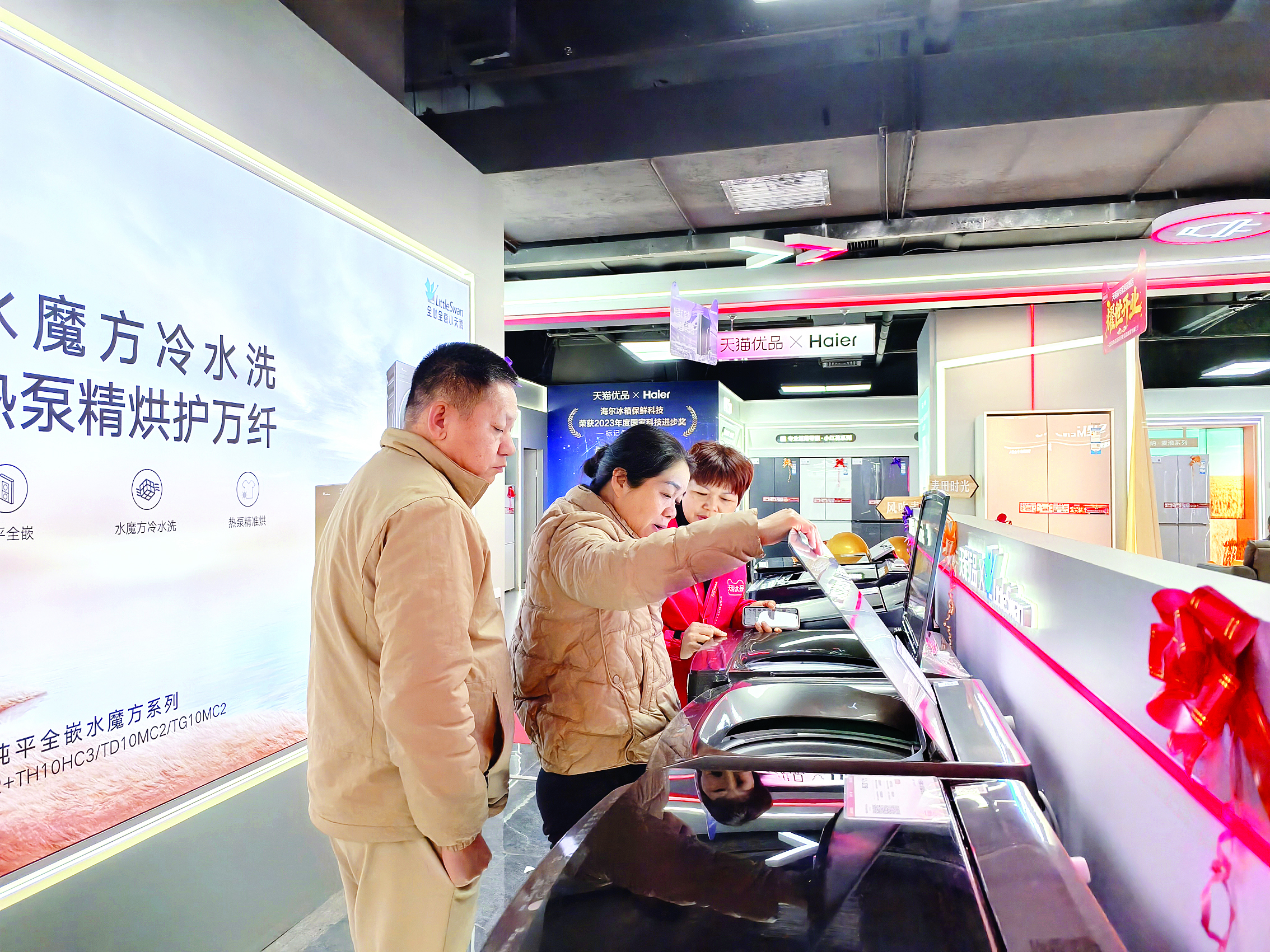 在天貓優(yōu)品城市旗艦店(惠城旗艦店),新店開業(yè)福利與國補政策疊加,人氣十足。“開業(yè)首日就成交了五六十單。”該店店長袁明介紹,門店在1月1日9時開業(yè)時國補尚未啟動,工作人員在10時國補通道開啟后立即同步做好店內國補宣傳展板,向消費者講解優(yōu)惠疊加的計算方式。“針對前期已下單但未享受到國補的消費者,我們這兩天還主動聯(lián)系他們,協(xié)助他們補享福利。”