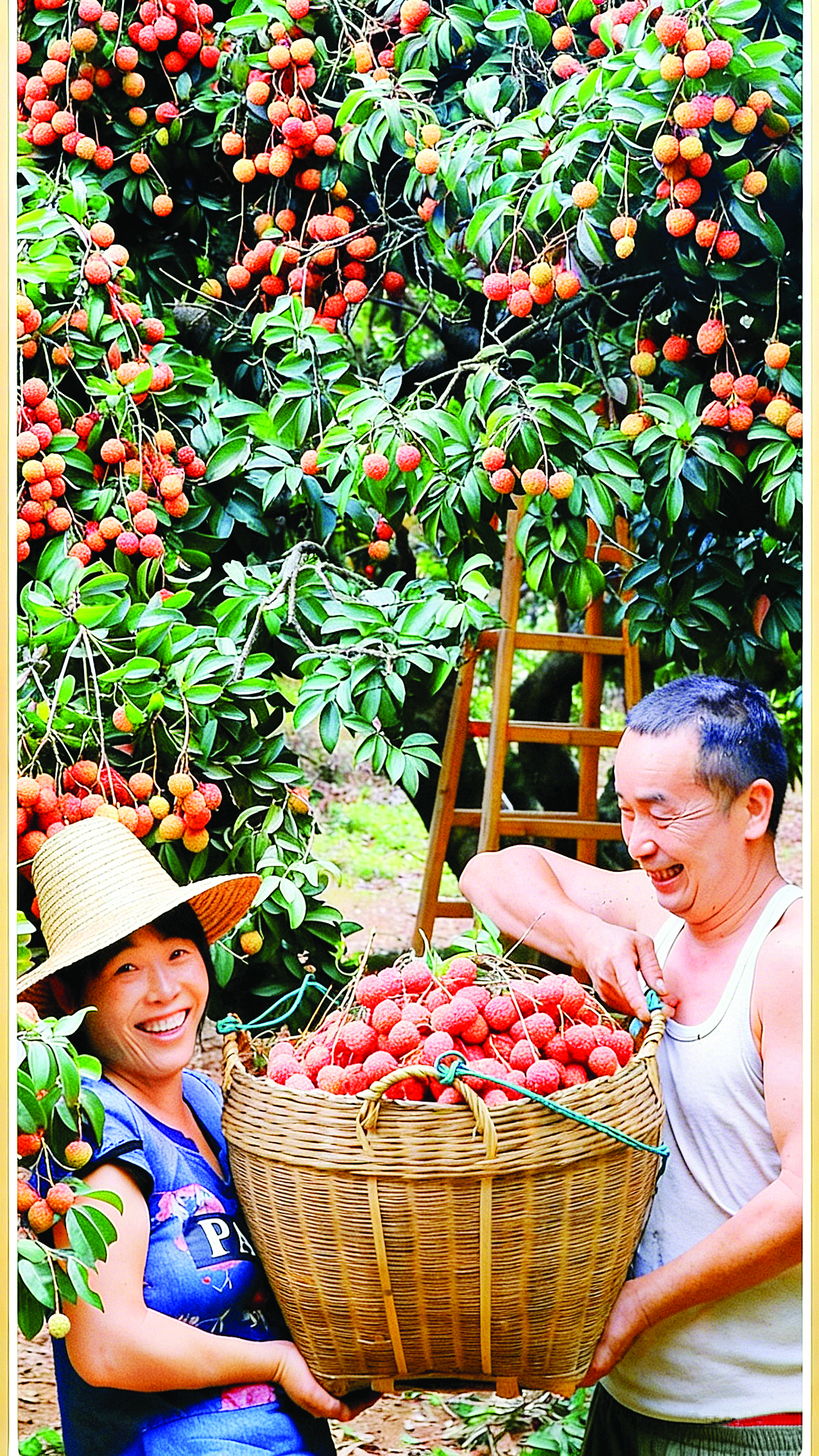 果農在采收荔枝。