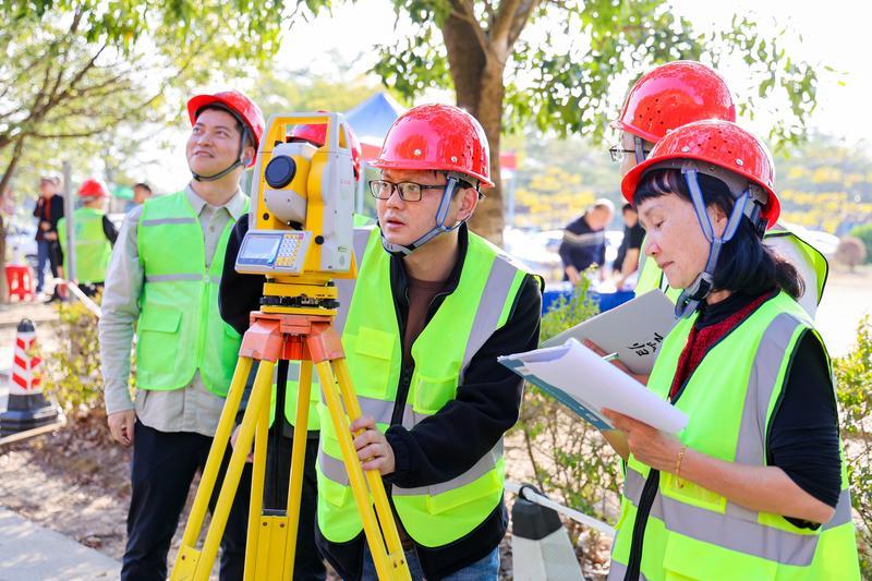 應(yīng)急演練現(xiàn)場,工作人員開展地表位移和豎向沉降監(jiān)測。