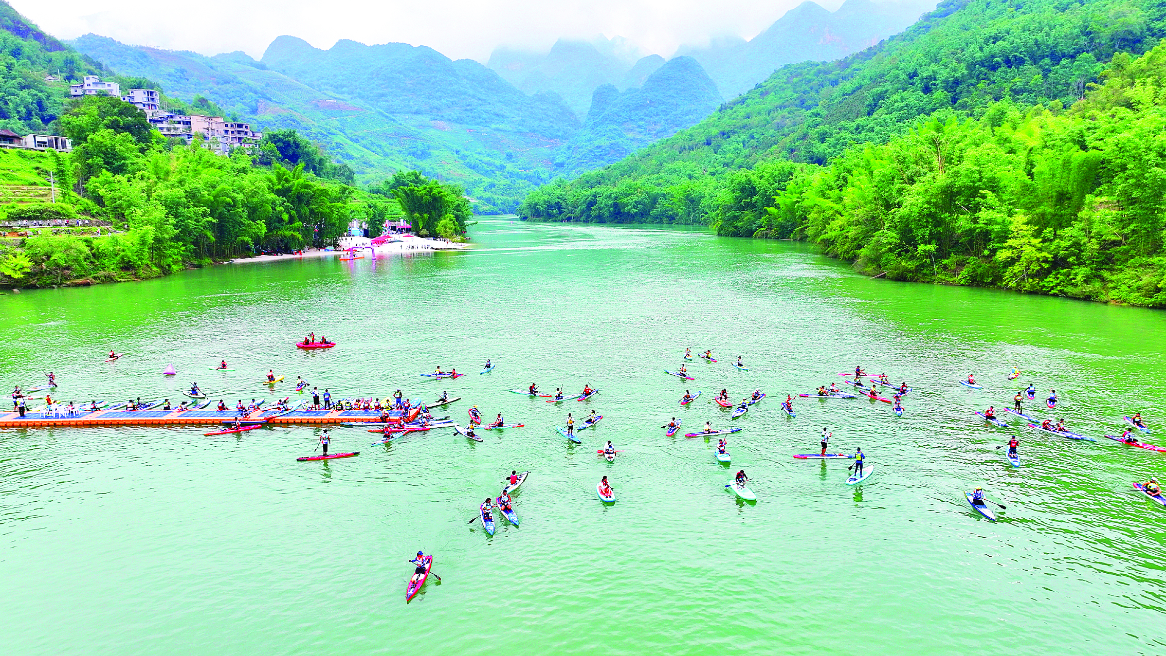 如今,行走在今日壩盤,活力撲面而來。餐館、民宿、小吃攤從無到有、蓬勃發(fā)展;槳板俱樂部、竹筏、親子游樂項(xiàng)目紛紛落戶。“通過‘媒體+’擦亮槳板IP,我們以槳板運(yùn)動為主體,以精品水果農(nóng)業(yè)和古寨文化體驗(yàn)為兩翼,推動業(yè)態(tài)從單一走向多元。”黔西南工作組安龍小組組員朱紫帆介紹道。