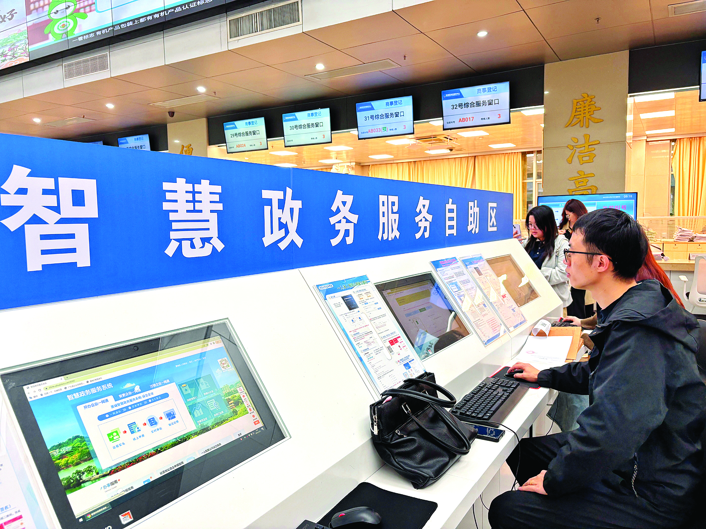 惠城區(qū)行政服務(wù)中心智慧政務(wù)服務(wù)自助區(qū)。