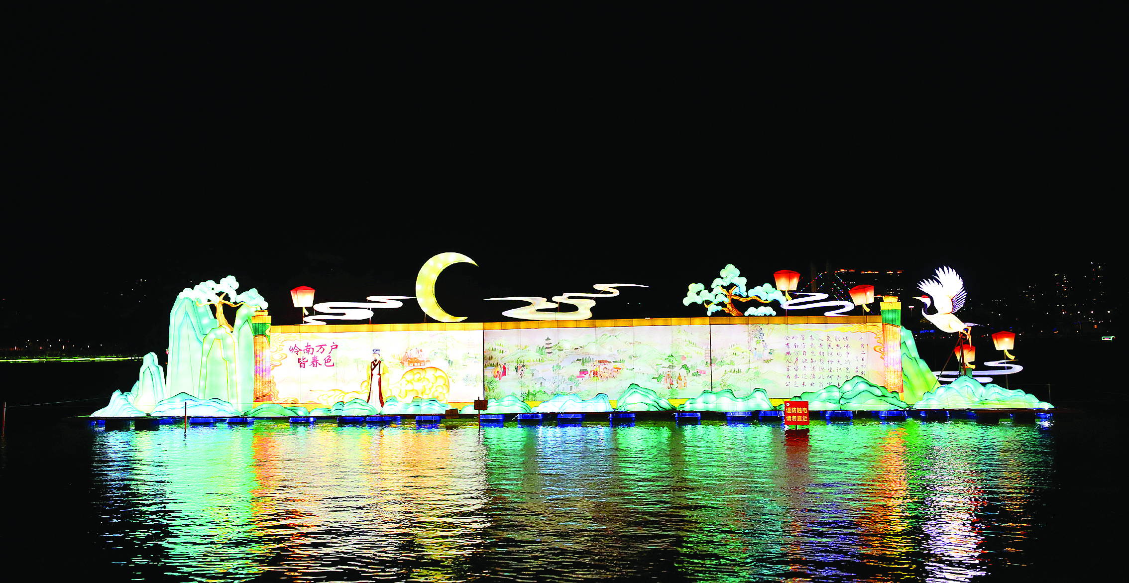 《嶺南萬戶皆春色》燈組以層疊的嶺南山水為背景,渲染出青綠山水般的詩意。