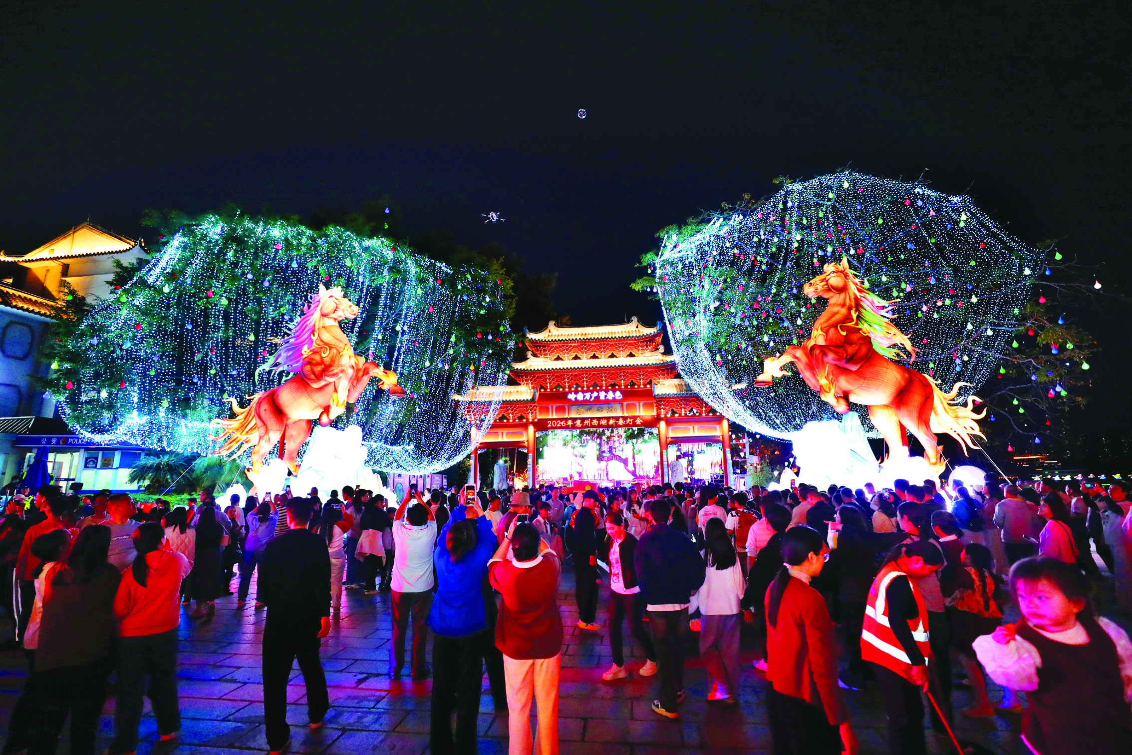 2月14日,惠州西湖新春燈會正式亮燈,現(xiàn)場人頭攢動(dòng)。