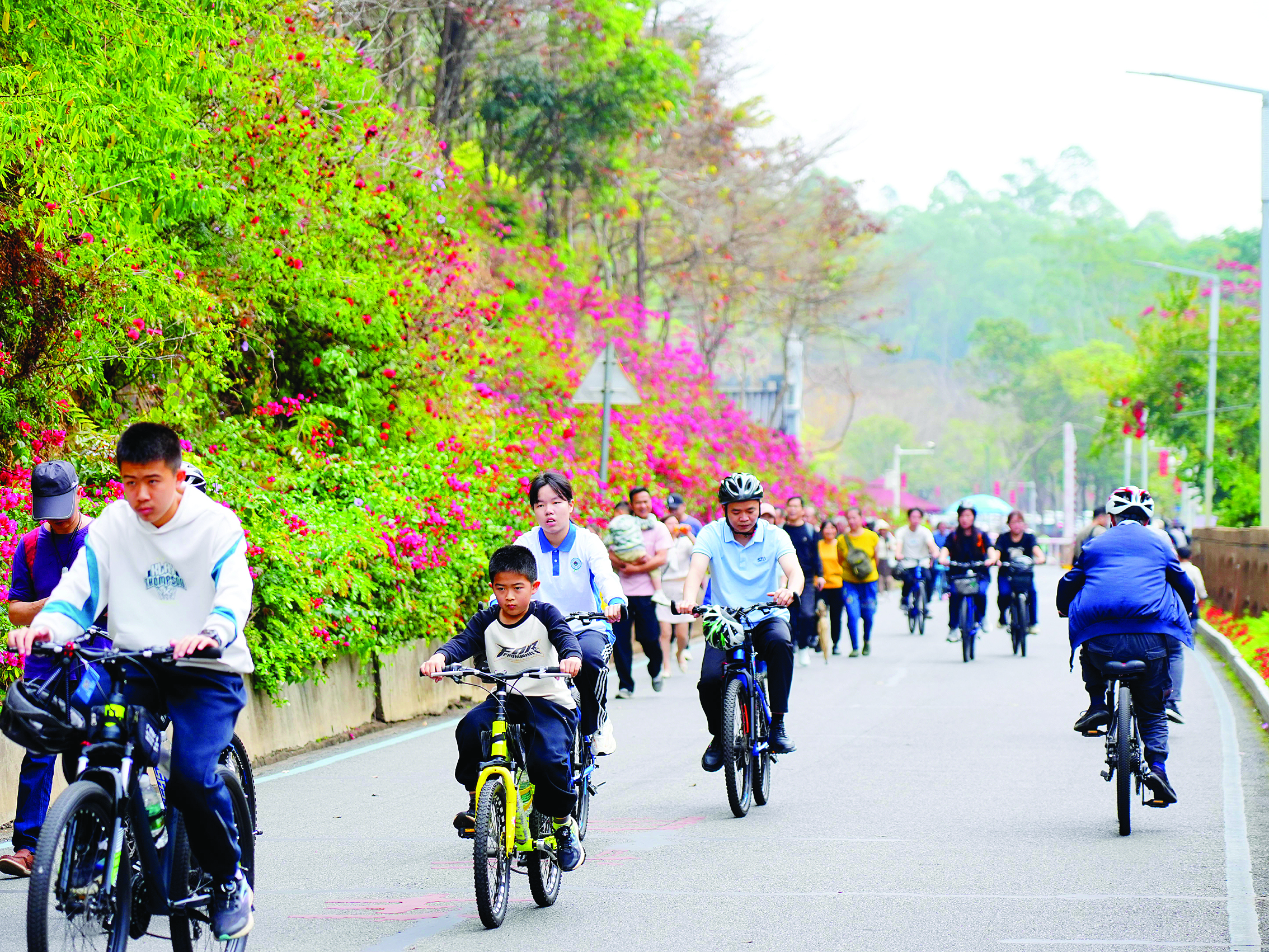 紅花湖騎行的人們。 惠州日報記者李苗 攝