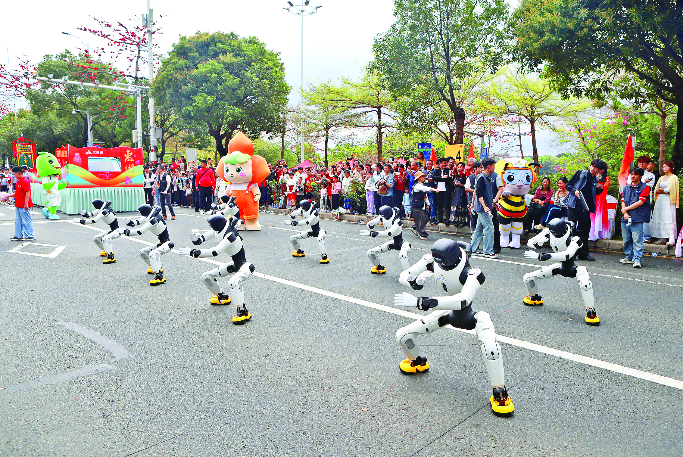 “萌機(jī)出動(dòng)”這支由惠州各單位文創(chuàng)人偶與智元機(jī)器人組成的隊(duì)伍,以科技質(zhì)感碰撞民俗萌態(tài)。只見智元機(jī)器人一下舞出太極拳,一下表演醒獅動(dòng)作,將傳統(tǒng)技藝與現(xiàn)代科技完美融合,既展現(xiàn)惠州打造人工智能和機(jī)器人產(chǎn)業(yè)的雄心,更呈現(xiàn)科創(chuàng)與民俗共生、傳統(tǒng)與現(xiàn)代交融的城市魅力。