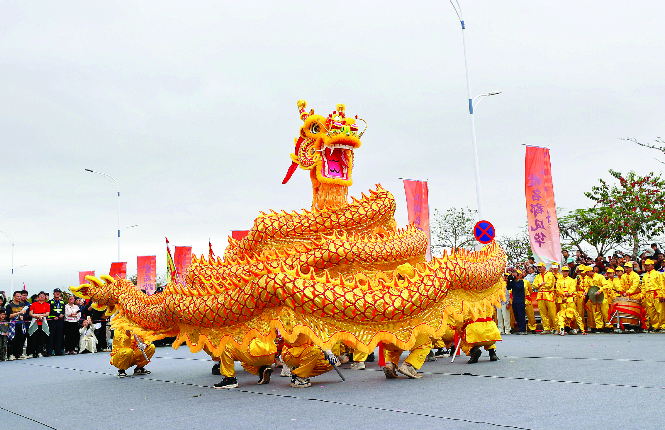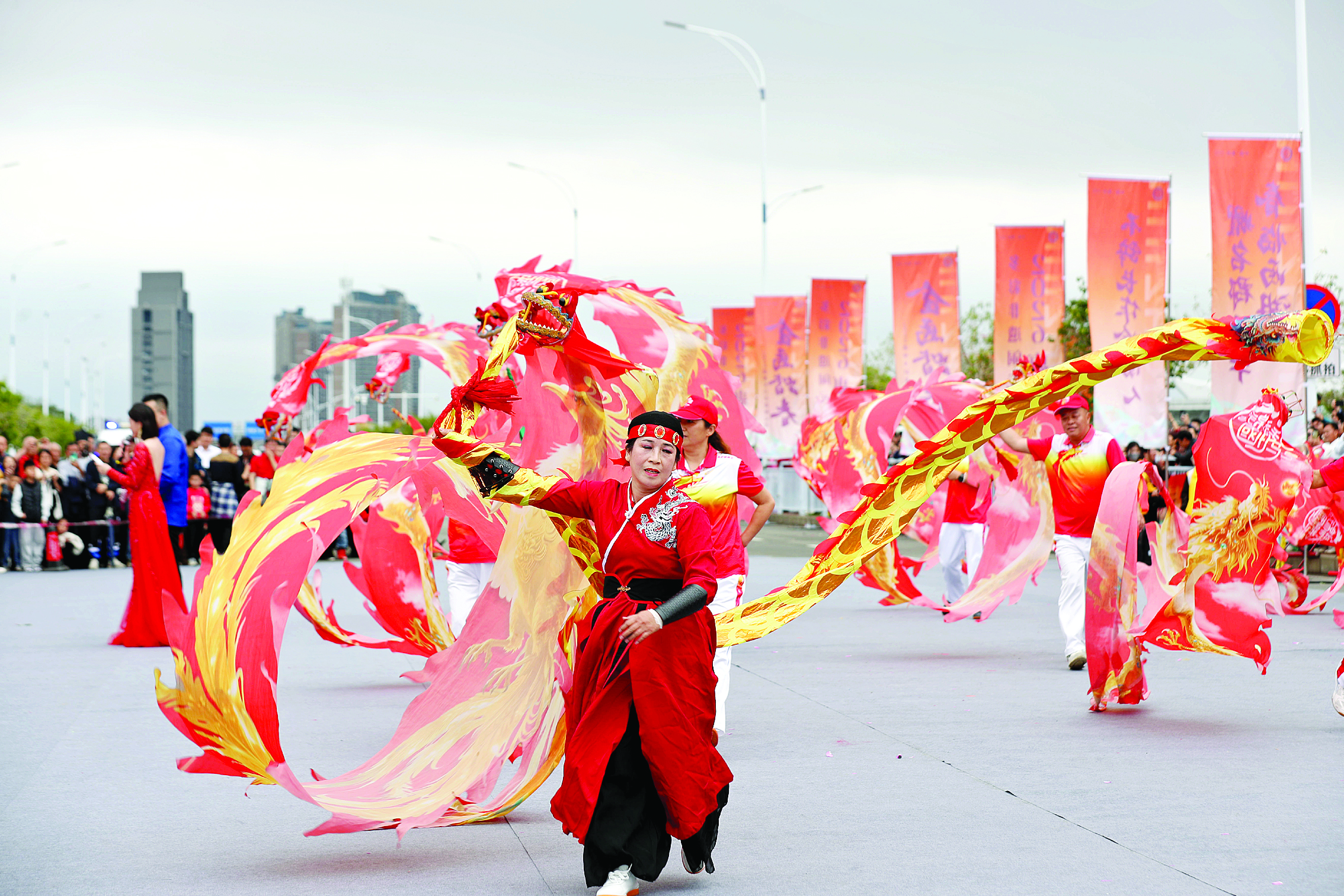 普寧英歌方陣一出場(chǎng)便點(diǎn)燃全場(chǎng)。舞者面繪英雄臉譜,手持雙短棒,隨鏗鏘鑼鼓演繹“雙龍出海”等經(jīng)典陣型,剛勁威猛,盡顯潮人敢闖敢拼的精神圖騰。吳川飄色則以“高、精、險(xiǎn)、奇、巧”驚艷四座,小演員們裝扮成神話人物,凌空立于精巧的色板上,仿佛天外飛仙。“每一板飄色就像一座流動(dòng)的小舞臺(tái)、一出精彩的折子戲。”精彩表演引得現(xiàn)場(chǎng)的攝影愛好者連連按下快門。