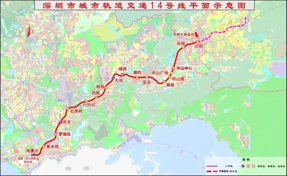 早在2021年6月,惠州市惠陽區(qū)自然資源局發(fā)布的《惠州市惠陽區(qū)淡水街道土湖白云南片區(qū)更新單元計劃可行性分析報告》(征求意見稿)里,提到《深圳市城市軌道交通14號線(惠州段)詳細規(guī)劃》。給出的方案中,14號線惠州段從沙田站引出后,設(shè)站5座,長度約11.1公里,均采用地下敷設(shè)。