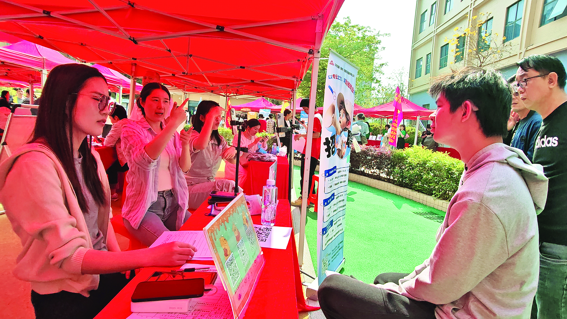 今年20歲的李偉順是一名聽障人士,當(dāng)天在家人的陪伴下專程趕來招聘會。了解到他的訴求后,眾合創(chuàng)展(惠州)信息咨詢服務(wù)有限公司的手語翻譯老師立刻上前,全程用手語與他溝通。“公司專門為殘疾人開通了‘綠色通道’,不僅配備手語翻譯,還推出線上直播帶崗、線下專場招聘相結(jié)合的模式。”該企業(yè)負(fù)責(zé)人胡曉坤說。
