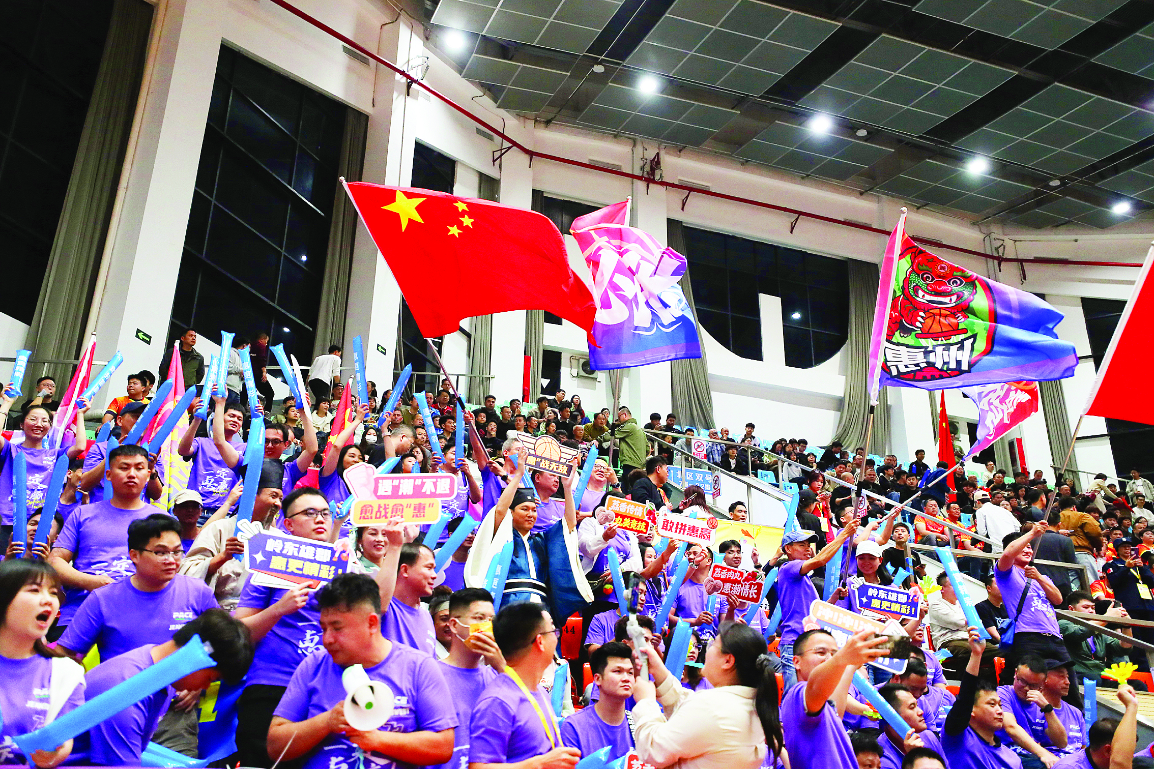 如果說場上的球員是戰(zhàn)士,那么看臺上那群身著紫色助威服的惠州啦啦隊,就是戰(zhàn)士最堅實的后盾。