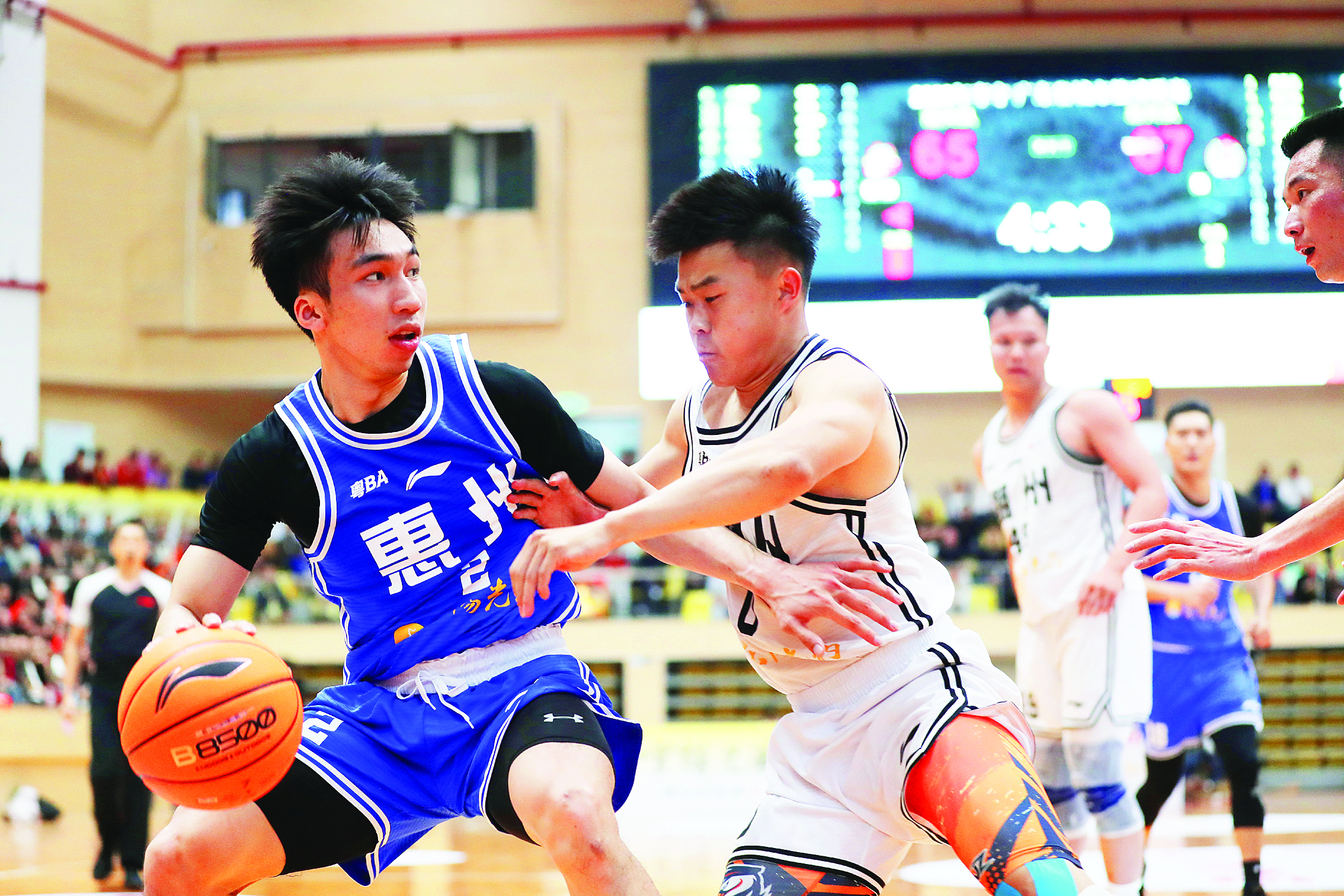 球員奮力突破對方防守。惠州日報記者湯渝杭 張藝明 肖泓 攝