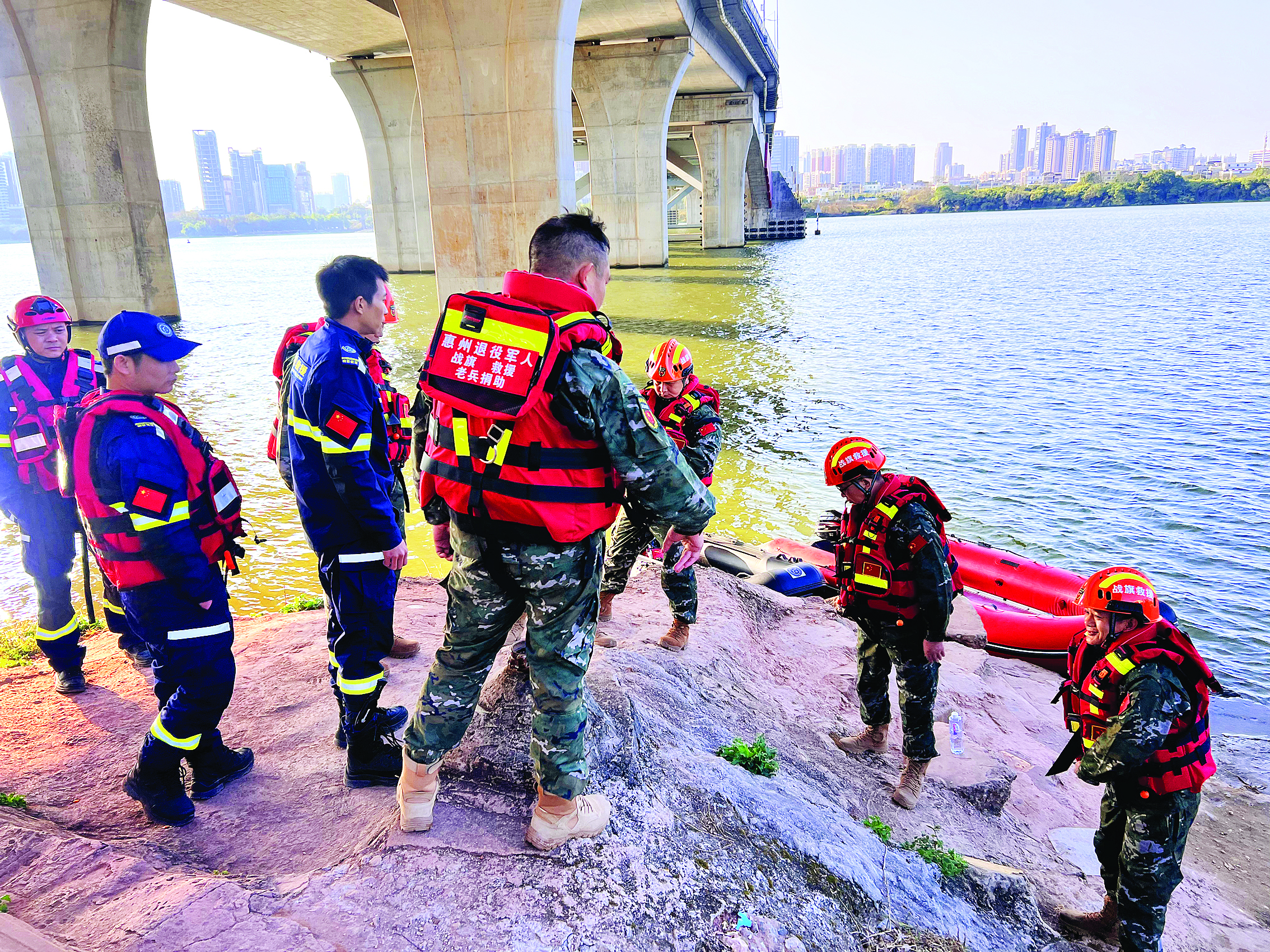 惠州市退役軍人戰(zhàn)旗志愿服務(wù)總隊?wèi)?yīng)急救援隊發(fā)動戰(zhàn)旗志愿者開展防溺水安全巡江行動。 惠州市退役軍人服務(wù)中心供圖