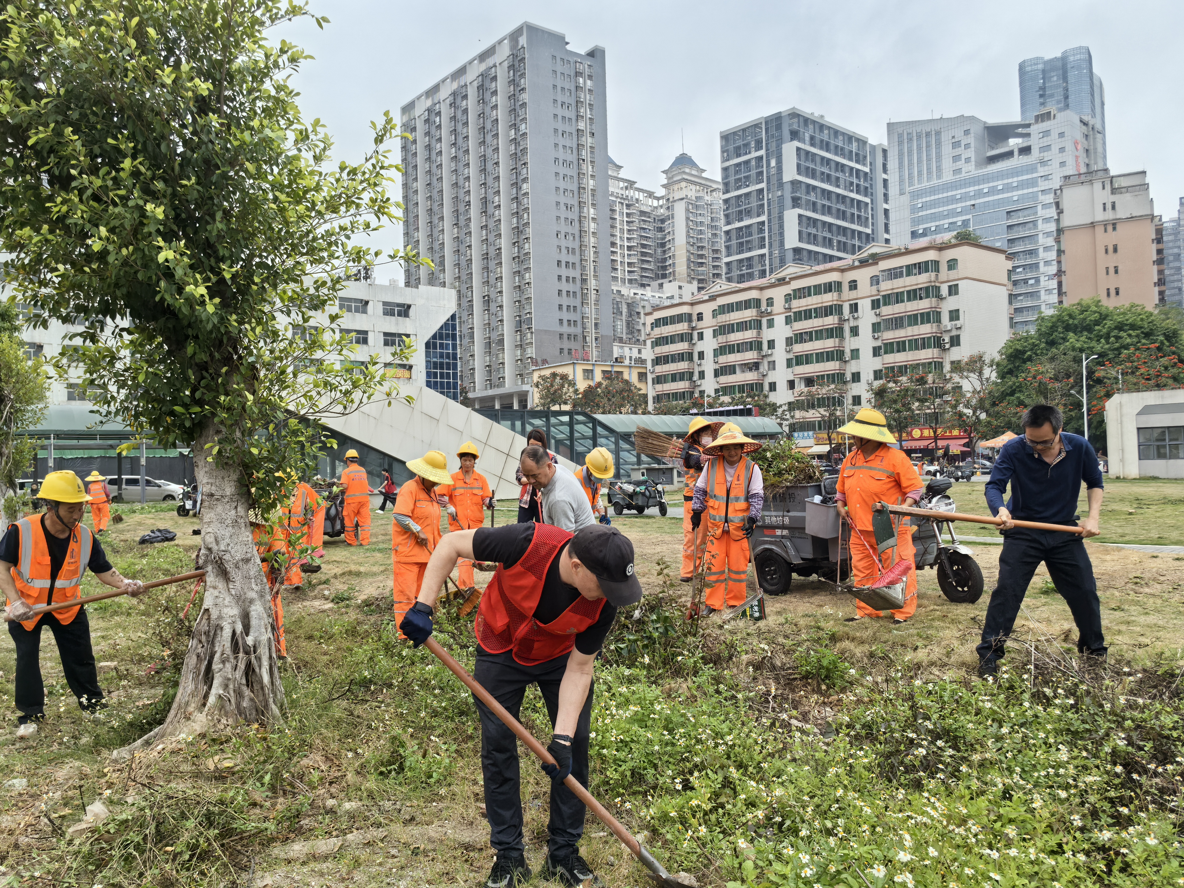 上午9時(shí),新湖公園周邊已是一片忙碌景象。身穿紅馬甲的志愿者手拿夾子、垃圾袋,彎腰在綠化帶中仔細(xì)翻找,將隱藏在草叢中的塑料袋、飲料瓶一一撿起;環(huán)衛(wèi)工人揮舞著掃帚,將路面的落葉、雜物清掃成堆;專業(yè)消殺隊(duì)員身背噴霧器,對下水道口、垃圾桶周邊等重點(diǎn)區(qū)域進(jìn)行精準(zhǔn)噴灑。