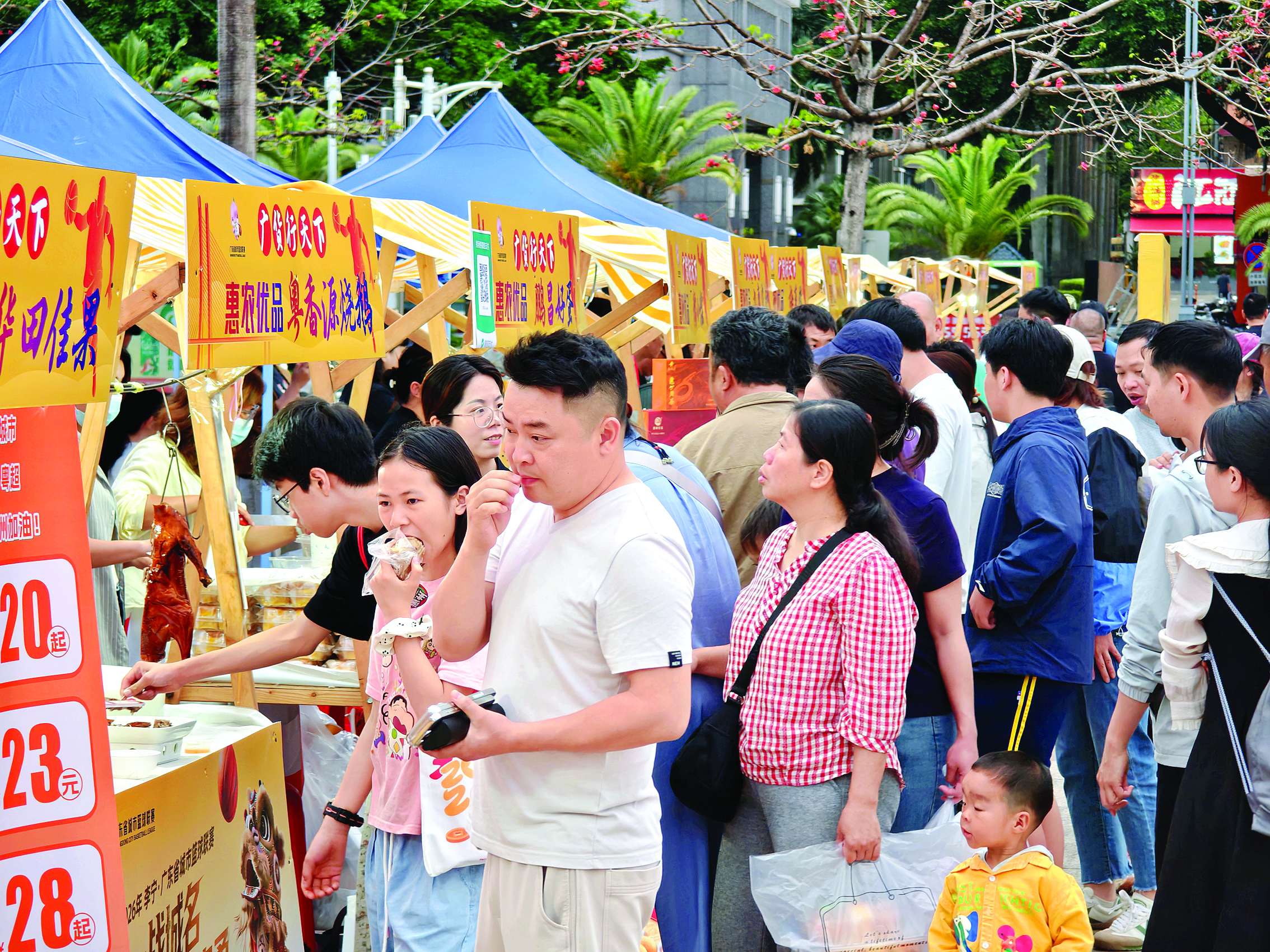 美食集市吸引眾多市民試吃。惠州日?qǐng)?bào)記者湯渝杭 張藝明 羅劍業(yè) 攝