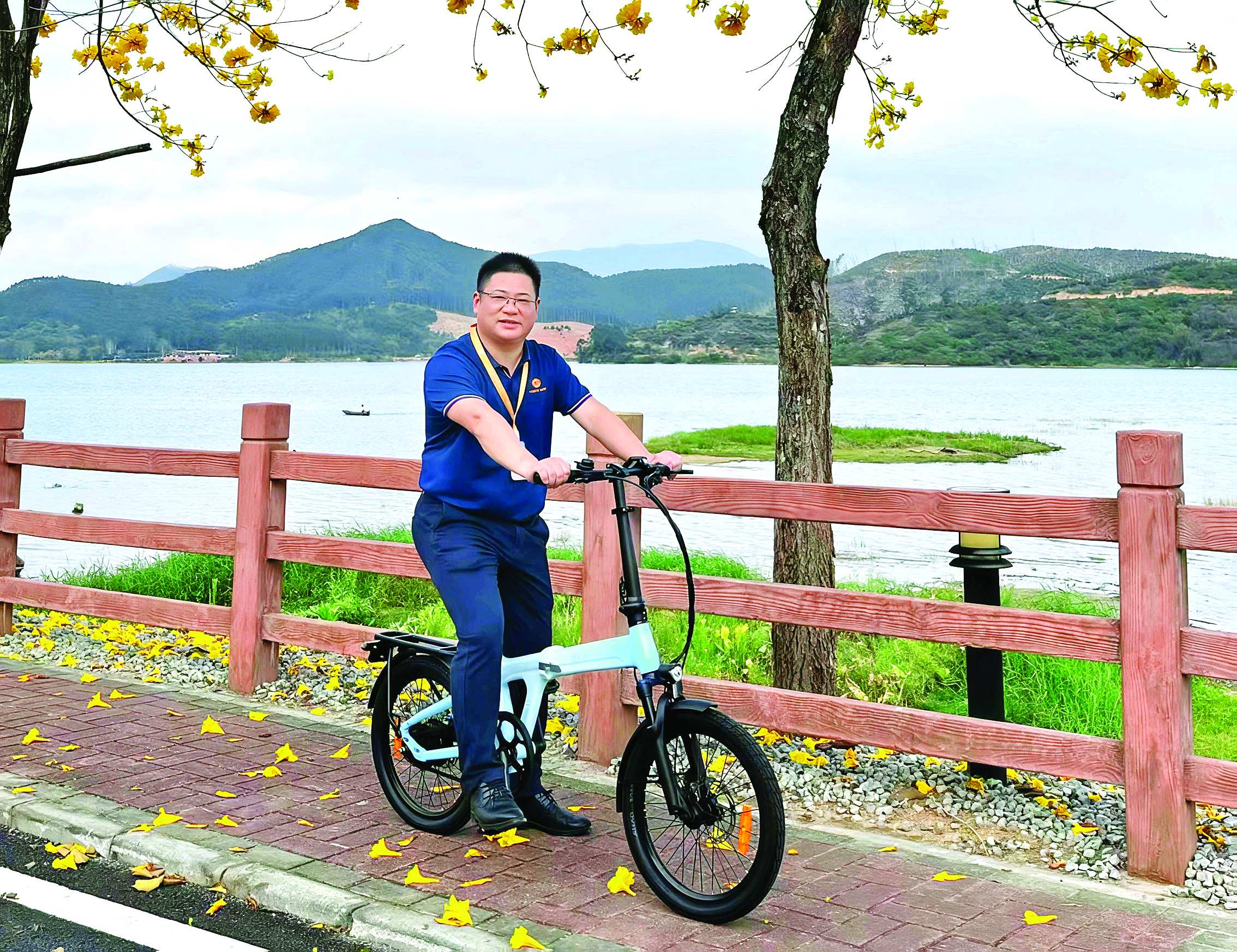 五年后的今天,我站在顯崗水庫(kù)邊,看著游客們騎著我們的電助力自行車,在湖光山色間穿行。陽(yáng)光灑在水面上,波光粼粼,騎行者們的笑聲隨風(fēng)飄來。我突然覺得,那句話,正在變成現(xiàn)實(shí)。